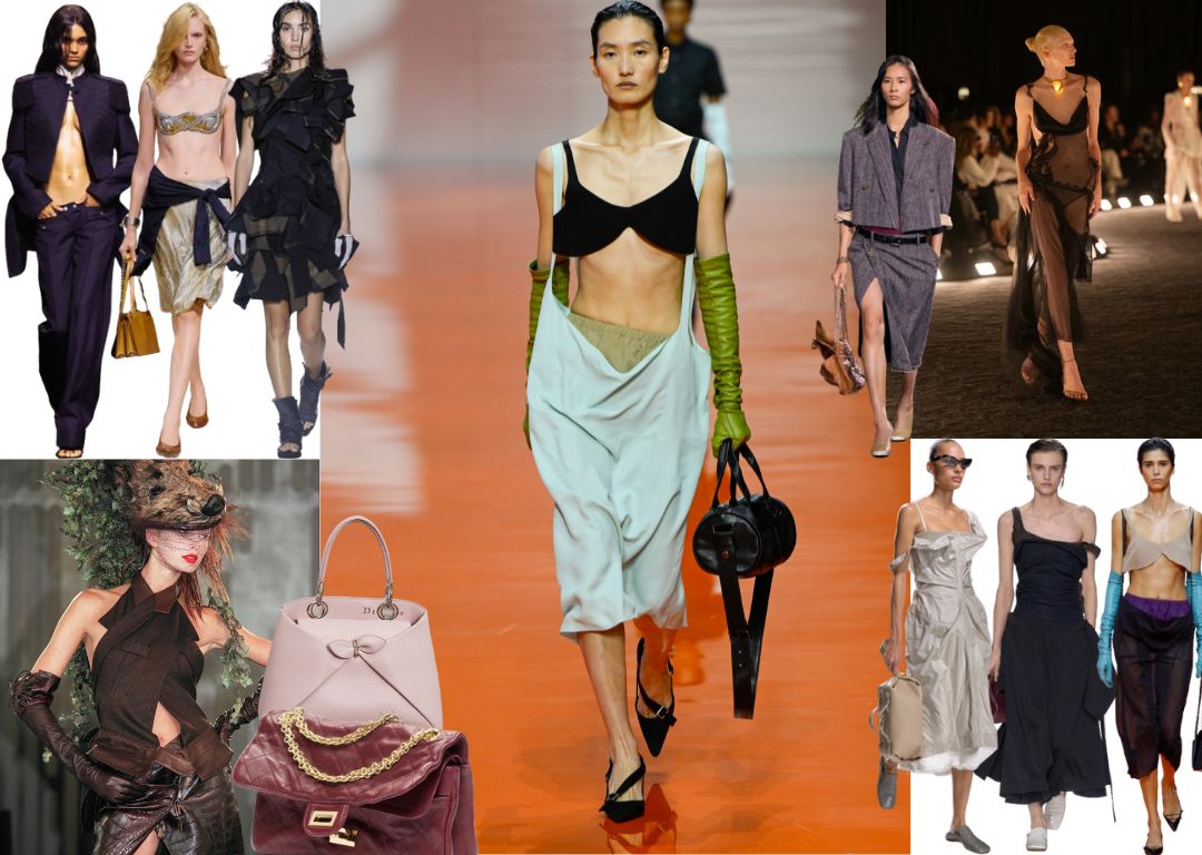 Για την πρώτη τους συλλογή στον οίκο Loewe, οι Jack McCollough και Lazaro Hernandez παρουσίασαν ρούχα που μετέδιδαν μια αίσθηση φυσικής κίνησης και απελευθέρωσης. Στον οίκο Schiaparelli, ο Daniel Roseberry έφερε στο προσκήνιο φορέματα κομμένα λοξά που γλιστρούσαν στο σώμα, παραπέμποντας στο ιστορικό «Tear Dress» που σχεδίασε η Elsa Schiaparelli με τον Salvador Dalí το 1938. Ο Seán McGirr επανέφερε το περιβόητο «bumster» παντελόνι, ακραία χαμηλοκάβαλο, που είχε παρουσιάσει ο Alexander McQueen το 1993. Τότε θεωρήθηκε προκλητικό, σήμερα διαβάζεται ως μελέτη της γραμμής και της αναλογίας.