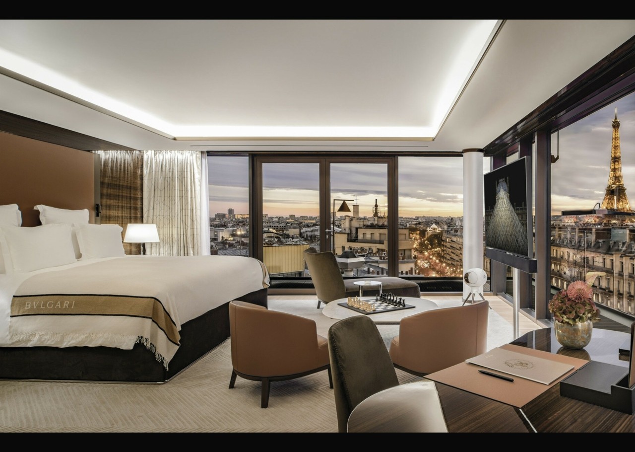 H Bulgari Penthouse Suite είναι θεαματική σε μέγεθος και design, ενώ διαθέτει θέα 360° πάνω από τις στέγες της γαλλικής πρωτεύουσας.