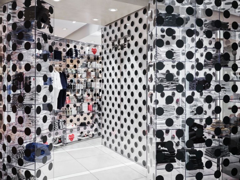 Το Pocket της Comme des Garçons στο Attica, με τον χαρακτηριστικό διάφανο σχεδιασμό και το μοτίβο των μαύρων πουά.