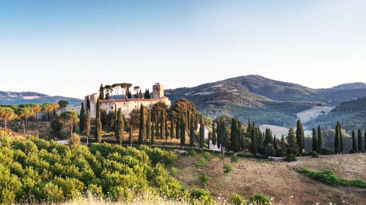 Mε βελανιδιές και καστανιές, ήσυχους δρόμους όπου παρατάσσονται λυγερά κυπαρίσσια, χωράφια με ελαιώνες και εσπεριδοειδή, αμπελώνες που εκτείνονται ως εκεί που φτάνει το μάτι. Και στην κορυφή ενός λόφου, ένα κάστρο που αποκαταστάθηκε με αγάπη και αποφασιστικότητα.
