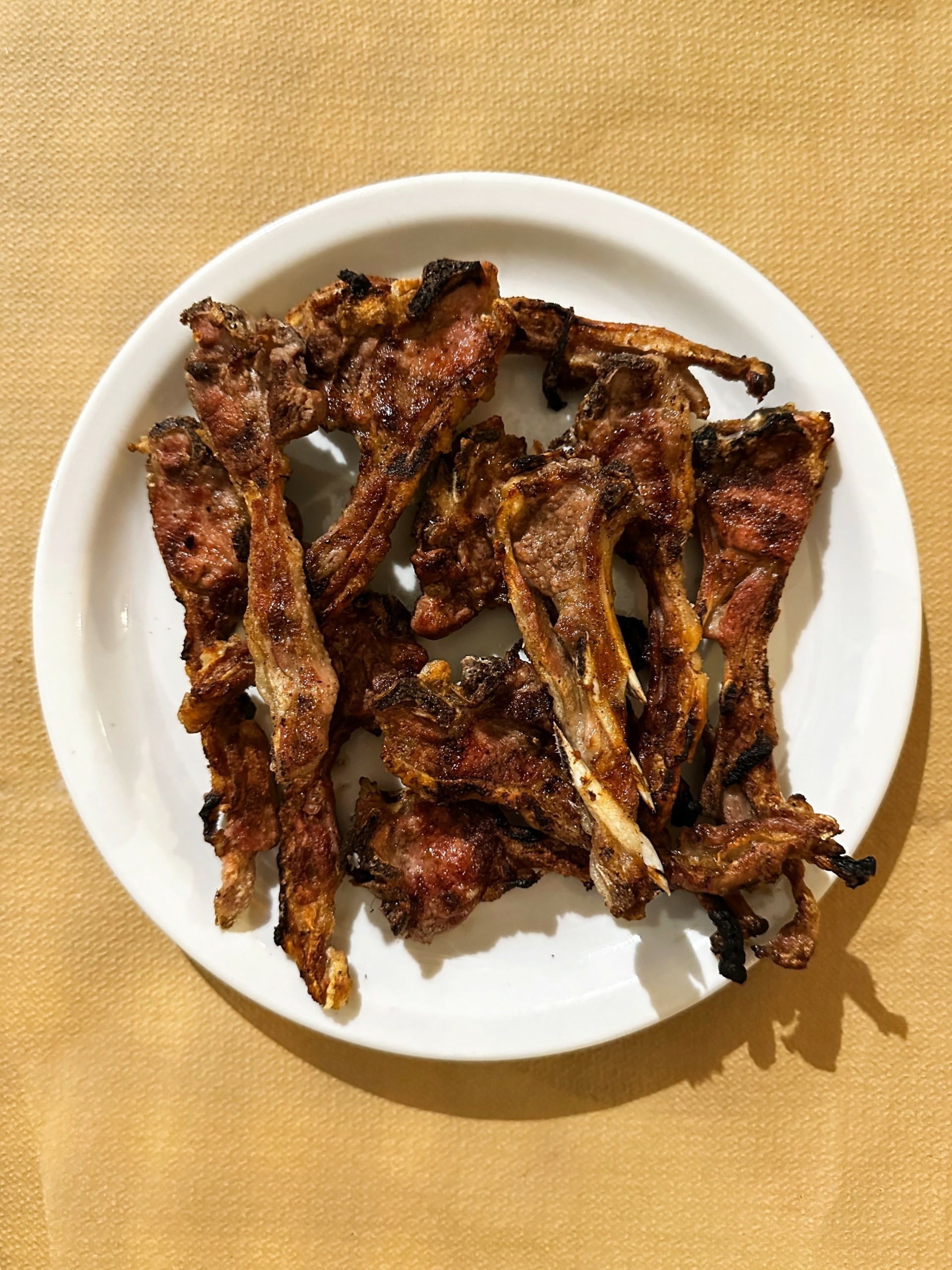 Η στιγμή που η πιατέλα ακουμπήσει το τραπέζι θυμίζει εκκίνηση σπριντ στο στίβο. «Πέφτουμε» όλοι πάνω της ταυτόχρονα με ανταγωνιστική διάθεση. Βέβαια, λίγο η ώρα της παραγγελίας, λίγο η θέα τους στα τριγύρω τραπέζια και η μυρωδιά τους στην ψησταριά, όταν τελικά έρθουν μπροστά μας σπεύδουμε, δικαίως, να γευτούμε το ζουμερό κρέας τους και το απίστευτα τραγανό λιπάκι που τα περιβάλλει. Το χρονικό, δε, διάστημα που παίρνει για να απομείνει στο πιάτο μας το ξεψαχνισμένο κοκαλάκι θα μπορούσε κάλλιστα να εισέλθει στα ρεκόρ Γκίνες.