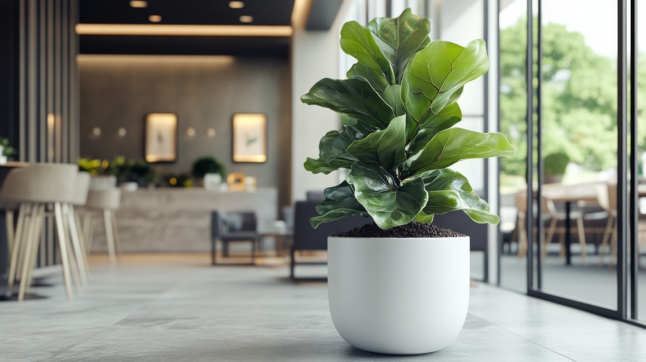 Γνωστός για τα φύλλα που θυμίζουν βιολί, ο συγκεκριμένος φίκος προσφέρει μια γλυπτική παρουσία στο χώρο. Το έντονο νεύρωμα που διατρέχει την επιφάνειά του δίνει μια ανάγλυφη, σχεδόν τρισδιάστατη αίσθηση, ενώ η μεγάλη επιφάνεια των φύλλων του τον καθιστά εξαιρετικό “φίλτρο” για τον αέρα.