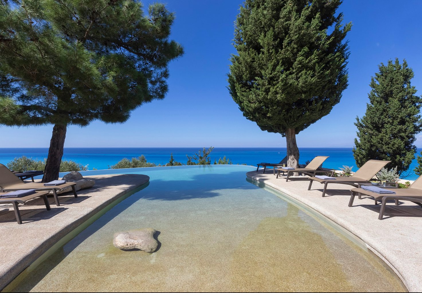 Με εμβληματική τοποθεσία στο πευκόφυτο δάσος της βορειοδυτικής ακτής της Λευκάδας, το Madreterra απέχει μόλις λίγα λεπτά με τα πόδια από τα γαλαζοπράσινα νερά του Ιονίου και την παραλία του Αβαλίου. Τα έξι υπνοδωμάτια «απλώνονται» και στους τρείς ορόφους του οικήματος ενώ ανάμεσά τους υπάρχει αίθουσα spa με τζακούζι, υδρομασάζ και ατμόλουτρο και γυμναστήριο. Το κάτω ισόγειο φιλοξενεί επίσης ένα laundry room και ένα WC επισκεπτών. Οι βεράντες ενσωματώνουν μια σκιερή υπαίθρια κουζίνα εξοπλισμένη με μπάρμπεκιου, μια μεγάλη στεγασμένη τραπεζαρία και καθιστικό και μια καμπυλωτή πισίνα υπερχείλισης με ρηχό τελείωμα με εφέ παραλίας, ιδανικό για οικογένειες με μικρά παιδιά.
