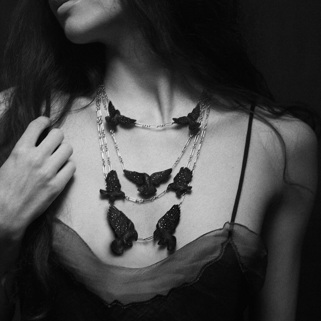 Δεν είναι λοιπόν τυχαίο που κάποιοι Άγγλοι σχεδιαστές έχουν αγκαλιάσει και πάλι το βικτωριανό must. Ανάμεσά τους και η σχεδιάστρια κοσμημάτων Natasha Wightman (Sussex), η οποία δημιούργησε μια εντυπωσιακή συλλογή με κυρίαρχο υλικό τον βρετανικό γαγάτη και μεγάλο πρωταγωνιστή τα… κοράκια. Μικρά γλυπτά σκαλισμένα από τον Βρετανό τεχνίτη Graham Heeley. «Ήθελα να χρησιμοποιήσω κάτι που προέρχεται από τη γη και τη χώρα μας», δήλωσε σε συνέντευξή της η designer. «O γαγάτης (jet) είναι ένα από τα παλαιότερα υλικά που έχουν χρησιμοποιηθεί για κοσμήματα, σίγουρα στη Μεγάλη Βρετανία… Μου άρεσε ο ρομαντισμός του, η ιστορία του».