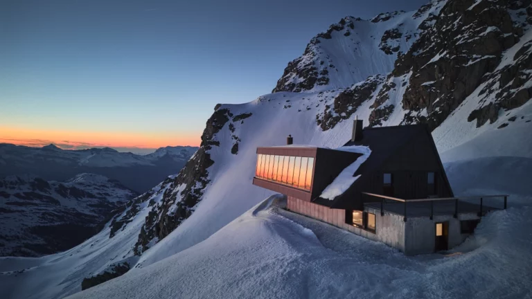 Σαν αετοφωλιά γαντζωμένη στον ηλικίας χιλιάδων ετών παγετώνα Tortin απ΄τον οποίο παίρνει και το όνομά του, το εντυπωσιακό σαλέ Cabane Tortin στα 3.000 μέτρα ξεπροβάλει εντυπωσιακά ανάμεσα στις χιονοσκέπαστες κορυφές και τις οξύαιχμες ορεινές σιλουέτες που χαράζουν τον ελβετικό ουρανό. Στο σκηνικό βασιλεύει μια γαλήνια αίσθηση απομόνωσης μαζί με δέος για όσα σε περιβάλουν: η ακραία τοποθεσία εν μέσω της αδάμαστης αλπικής φύσης, η εκθαμβωτική ανατολή με τις χρυσαφένιες αντανακλάσεις στις κατάλευκες πλαγιές, η ώρα που ο ουρανός βάφεται σε πορτοκαλί τόνους καθώς δύει πίσω από το Mont Blanc, το σούρουπο που το φεγγάρι αναδύεται πάνω από Mont Fort.