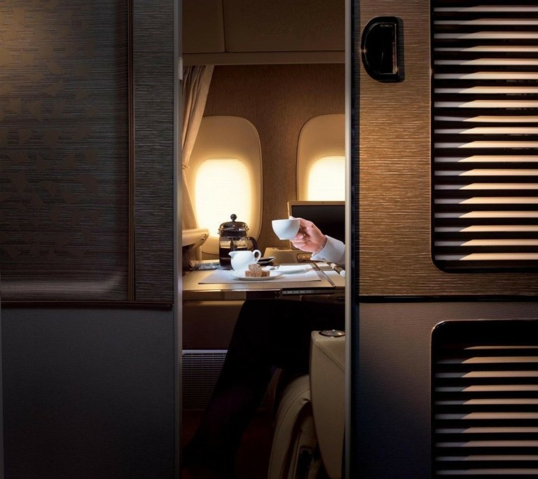 Οι χώροι που σχεδιάστηκαν με πιο μοντέρνα προσέγγιση έχουν διαφοροποιήσει τη συνηθισμένη διάταξη των θέσεων της first class που συνήθως ήταν άνετες πολυθρόνες σε αραιή παράταξη και έχει δώσει τη θέση της σε ένα fine living μοντέλο με έμφαση στην ιδιωτικότητα και την άνεση. Εκτός από τις ανέσεις στις καμπίνες, οι επιβάτες της πρώτης θέσης απολαμβάνουν μια ολοκληρωμένη εμπειρία με διάφορα άλλα προνόμια πέρα από την πτήση, όπως υπηρεσίες σοφέρ με πολυτελή αυτοκίνητα, premium πρόσβαση στο lounge, ιδιωτικό check-in κτλ.