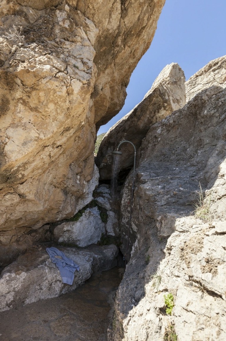 Οι δυσκολίες ήταν πολλές. Καταρχάς επειδή βρισκόμασταν στην πιο βαθειά οικονομική κρίση, θελήσαμε, και γιατί είναι στη φιλοσοφία μας ως γραφείο, να χρησιμοποιήσουμε μόνο τοπικά συνεργεία και υλικά. Για αυτό επιλέξαμε να είναι το μπετόν εμφανές και ήταν το δομικό στοιχείο. Ολος ο οργανισμός είναι αυτό που φαίνεται και όλο το κτίριο χτίστηκε σαν μια γέφυρα, ένα δοκάρι. Τις δυσκολίες μάς τις έβαζε το τοπίο. Επρεπε να κάνουμε κάτι σαν βελονισμό πάνω στην πρώτη “καλούπωση”. Η σκαλωσιά έπρεπε να μπει πολύ συγκεκριμένα, να “πατήσει” με τέτοιο τρόπο ώστε να μην πέσει ο βράχος. Η επιθυμητή ποιότητα του μπετού ήταν δύσκολο να επιτευχθεί, αλλά τελικά την βρήκαμε και τα καταφέραμε. Μετά θέλαμε να το αφήσουμε λιγότερο επεξεργασμένο, πιο “rough”, άλλο που μετά οι μάστορες επέμειναν να το γυαλίσουμε και να το τελειοποιήσουμε. Και το κάναμε.