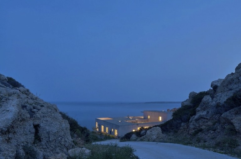 Ηρθε σε επαφή με εμάς ένα ζευγάρι που ζει στο Παρίσι, μετά από μια πρόταση ενός άλλου αρχιτέκτονα από την οποία δεν είχαν μείνει ευχαριστημένοι. Επισκεφθήκαμε το οικόπεδο και καταλάβαμε ότι σε αυτό το τόσο ιδιαίτερο τοπίο με τους βράχους, δεν θα μπορούσαμε να υλοποιήσουμε τη μελέτη μας τόσο “αθόρυβα” όσο θα θέλαμε. Νιώσαμε ένα δέος. Γεννήθηκε η ιδέα να “βγούμε” προς τη θάλασσα με το σκεπτικό ότι θα θυσιάσουμε τον εξωτερικό χώρο μπροστά από το σπίτι, αλλά σίγουρα μέσα σε αυτό οι ιδιοκτήτες θα βίωναν την εμπειρία του τοπίου με μια απόλυτη πληρότητα. Είναι άλλωστε και windsurfers που πήγαιναν στην περιοχή για πάνω από δέκα χρόνια κι επειδή επίσης είναι κάθε μέρα στη θάλασσα, ήθελαν να ζουν αυτήν την εμπειρία του τοπίου, κάπου προστατευμένοι από αέρηδες και καιρικά φαινόμενα. Για αυτό, σε δεύτερο χρόνο, δημιουργήσαμε κάποια αίθρια, ώστε να υπάρχει αυτή η εναλλαγή εξωτερικών και εσωτερικών χώρων, που ευνοεί αυτή την ευχάριστη καλοκαιρινή ζωή.