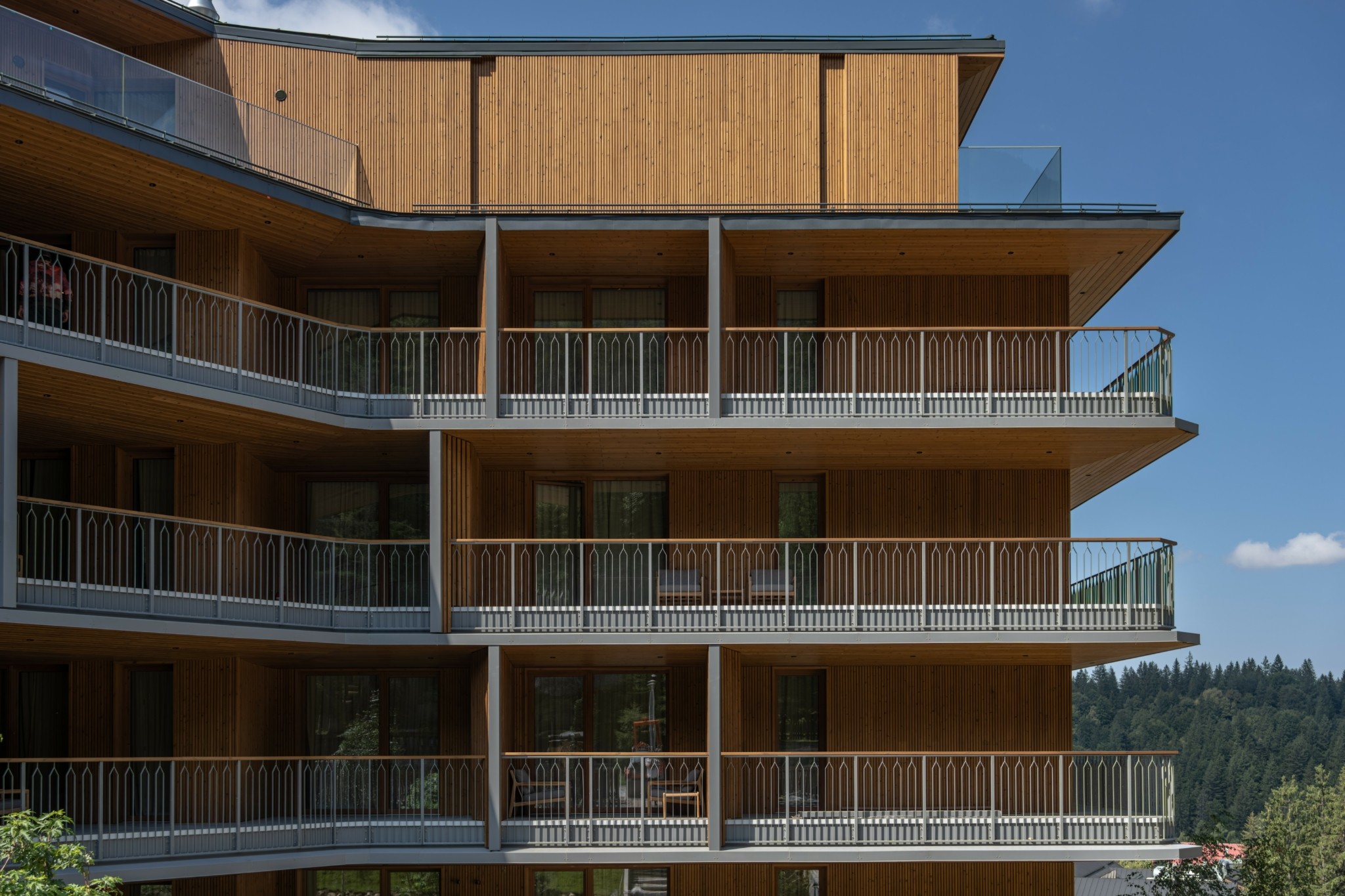 Περιτριγυρισμένο από πυκνά δάση, προσφέρει πανοραμική θέα στους ορεινούς όγκους των Καρπαθίων, δημιουργώντας την αίσθηση ενός καταφυγίου πολυτελείας μέσα στην άγρια φύση. Κάθε παράθυρο, κάθε μπαλκόνι, ακόμη και το εστιατόριο του ξενοδοχείου, προσφέρουν μαγευτική θέα στο δάσος, που αλλάζει χρώματα σε κάθε εποχή -από το έντονο πράσινο του καλοκαιριού μέχρι το χρυσαφένιο του φθινοπώρου και το κατάλευκο του χειμώνα. Η αρχιτεκτονική του ξενοδοχείου αποτελεί από μόνη της σημείο αναφοράς. Εμπνευσμένη από τα ελβετικά σαλέ, ενσωματώνει παραδοσιακά στοιχεία της Τρανσυλβανίας, όπως το χαρακτηριστικό μπλε χρώμα της περιοχής και τα κεραμικά του Viscri, του οικισμού που είναι ενταγμένος στους προστατευόμενους της Unesco. Η χρήση φυσικών υλικών και η προσεκτική ένταξη του κτιρίου στο φυσικό περιβάλλον δημιουργούν μια αρμονική σχέση με το τοπίο.