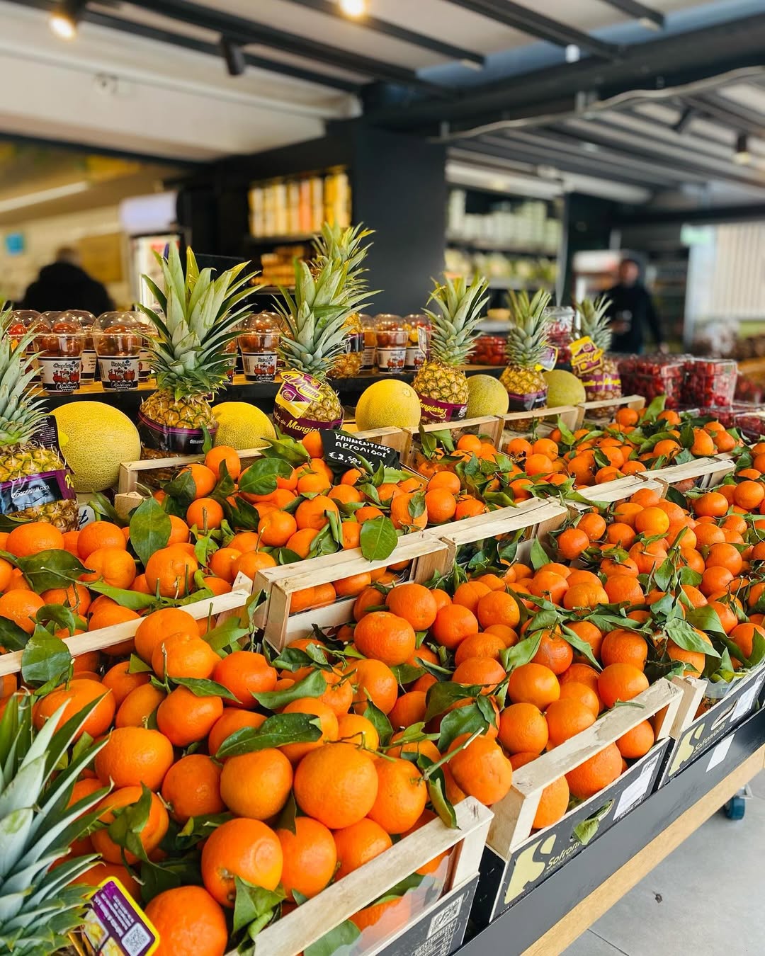 Στα ράφια του deli Comte 30 μηνών δίπλα σε Epoisses Berthaut, Cabrales από την Ισπανία, Gorgonzola dolce cremoso και παλαιωμένη Γραβιέρα Νάξου με το ψευδώνυμο «Άγιος Ισίδωρος» -το είδος της συλλογής που σπάνια συναντάς ακόμη και σε εξειδικευμένα καταστήματα. Δίπλα, αλλαντικά Levoni: Prosciutto Parma 24 μηνών, Culatello di Zibello, guanciale. Και σε μια γωνία, χειροποίητες σοκολάτες Kakau Worship, Venchi, granola της Phil’s και βιολογικό μέλι Kory’s σε σπάνιες ποικιλίες. Ήταν σαν κάποιος να είχε μπει στη σκέψη των ανθρώπων που ψωνίζουν και να είχε χτίσει το κατάστημα γύρω από αυτό που θέλουν, χωρίς όμως ποτέ να τους το πει.