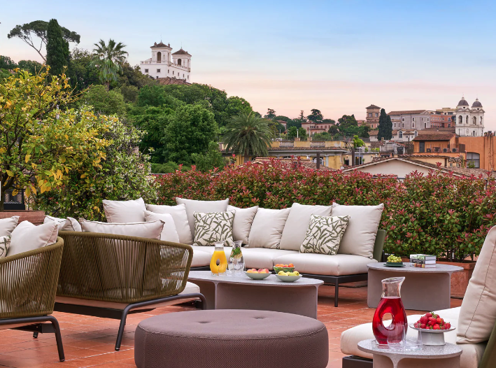 Με την απρόσκοπτη θέα που κάνει το μυστικό κήπο του ξενοδοχείου, τη Villa Borghese και τον λόφο Pincio, να μοιάζουν με φυσική συνέχεια του χώρου, αποδεικνύεται το ιδανικό σημείο για να απολαύσετε το ρωμαϊκό ήλιο, μια ιδιαίτερη, ρομαντική βραδιά ή ακόμη και την ιδιωτική εμπειρία της ιεροτελεστίας του ιταλικού aperitivo, που σας προσφέρεται σαν έξτρα παροχή κατά τη διαμονή σας στη σουίτα.