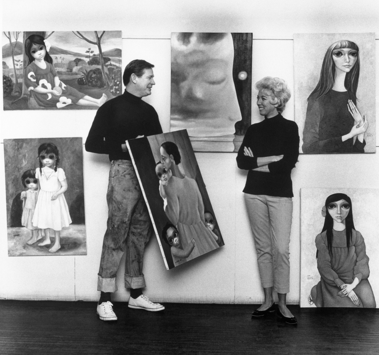 Η Μάργκαρετ Κιν αποτελεί ίσως την πιο απτή και κινηματογραφική περίπτωση. Οι πίνακες με τα παιδιά και τα υπερμεγέθη, θλιμμένα μάτια έγιναν σύμβολο μιας ολόκληρης εποχής και τεράστια εμπορική επιτυχία. Το όνομα που τους συνόδευε, όμως, δεν ήταν το δικό της, αλλά του συζύγου της, Γουόλτερ Κιν. Εκείνος πούλησε, διαφήμισε και έκτισε μια ολόκληρη αυτοκρατορία γύρω από τους πίνακες αυτούς, ενώ εκείνη ζωγράφιζε ασταμάτητα, κλεισμένη σε ένα δωμάτιο, υπό την απειλή και τον φόβο του συζύγου της. Για χρόνια, ο κόσμος πίστευε πως ο Γουόλτερ ήταν ο δημιουργός. Ωστόσο, η αλήθεια αποκαλύφθηκε μόνο μετά το διαζύγιο και κορυφώθηκε σε μια δικαστική αίθουσα, όπου η Μάργκαρετ κλήθηκε να ζωγραφίσει -και το έκανε- μπροστά στον δικαστή, ενώ ο Γουόλτερ αρνήθηκε να το κάνει. Κάπως έτσι η δικαίωση ήρθε, αν και καθυστερημένα και η ιστορία της απέδειξε πόσο εύκολα μια γυναίκα μπορούσε να εξαφανιστεί, ή καλύτερα να την εξαφανίσουν από το ίδιο της το έργο.