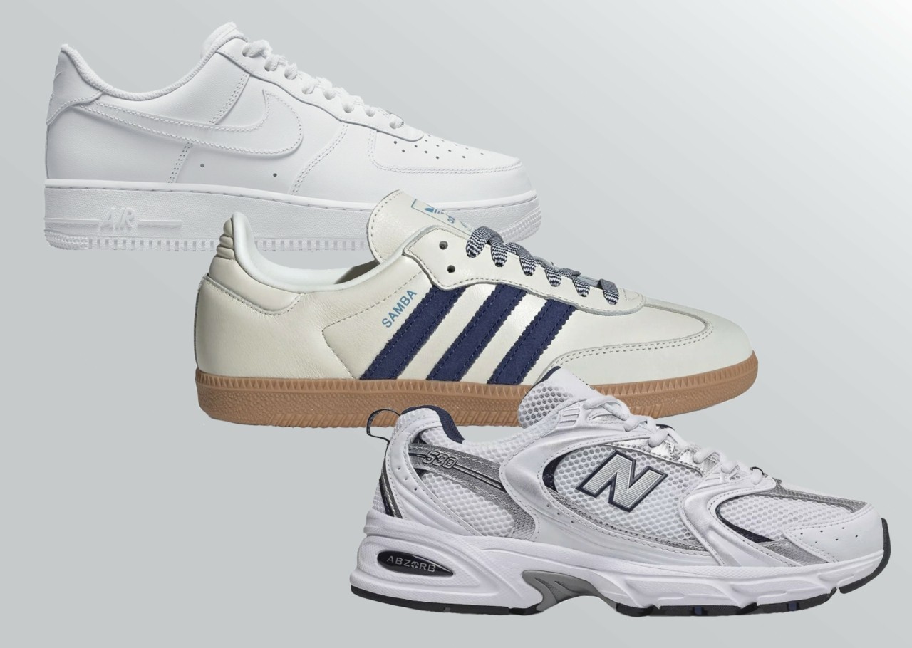 Αν έπρεπε να επιλέξουμε το sneaker που κάνει θραύση στην Ελλάδα σήμερα, αυτό θα ήταν το Nike Air Force 1 ’07. Από τα σχολικά διαλείμματα μέχρι τα after-office drinks, το AF1 είναι παντού. Στην ίδια κατηγορία, το Adidas Samba OG έχει κερδίσει έδαφος με τρόπο που θυμίζει τη δεκαετία του ’90, ενώ τα New Balance 530 εκφράζουν τη σύγχρονη νοσταλγία της Gen Z.