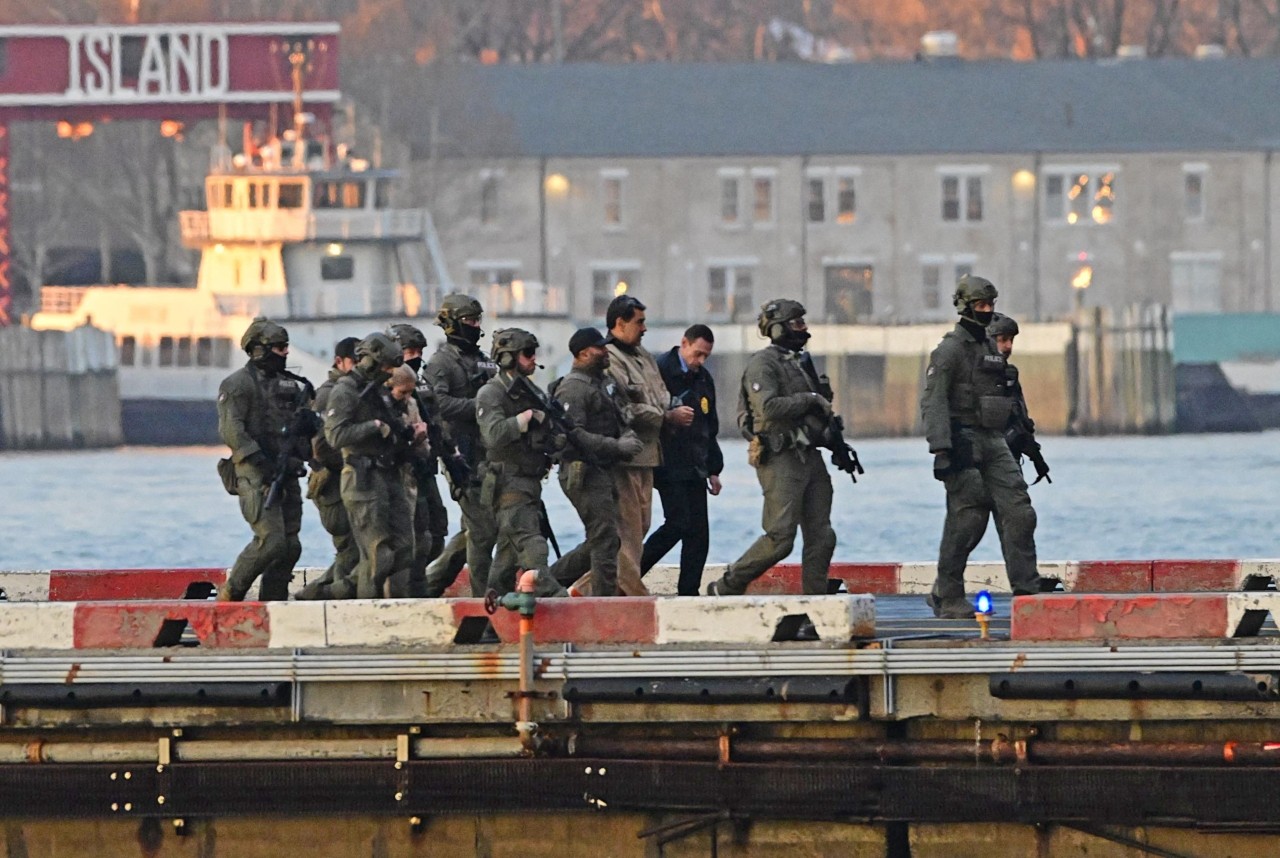 Viral το γαλάζιο φούτερ που φορούσε ο πρώην ηγέτης της Βενεζουέλας κατά τη μεταφορά του σε μια από τις πιο σκληρές φυλακές των ΗΠΑ.