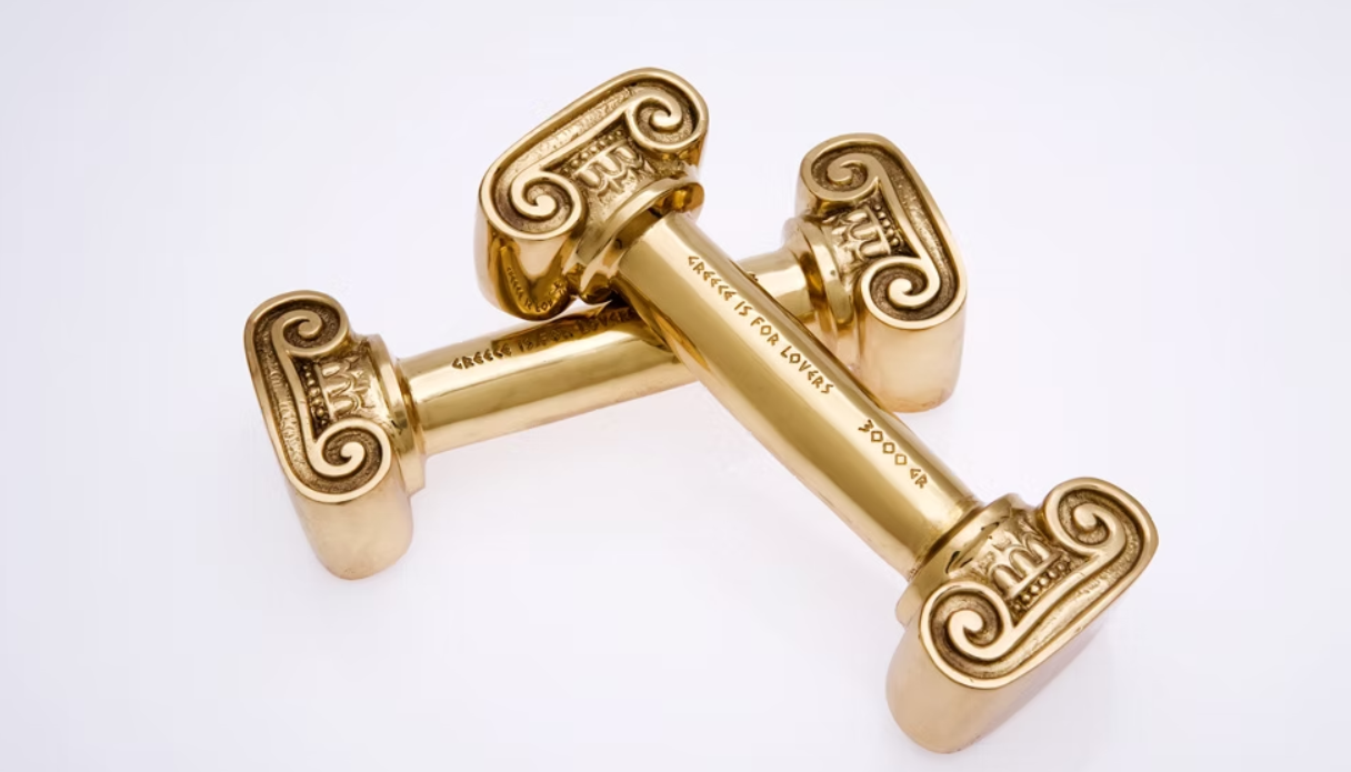 –Ποιο είναι το «signature» προϊόν σας ή εκείνο που θεωρείτε ότι εκπροσωπεί καλύτερα την εταιρία σας και ποιο το αγαπημένο των ξένων αγοραστών; Ένα αντικείμενο που θεωρείται πλέον «classic» Greece is for Lovers είναι τα βαράκια «Build your Myth», ένα από τα προϊόντα από την πρώτη συλλογή μας που εκφράζει απόλυτα την αισθητική, το χιούμορ, την υπερβολή και την σαρκαστικότητά μας. Άλλο αγαπημένο των ξένων αγοραστών υπήρξε και το «Hooker’s Delight», ποτήρι Martini με αξεσουάρ για -κυριολεκτικά- γερά καμάκια!