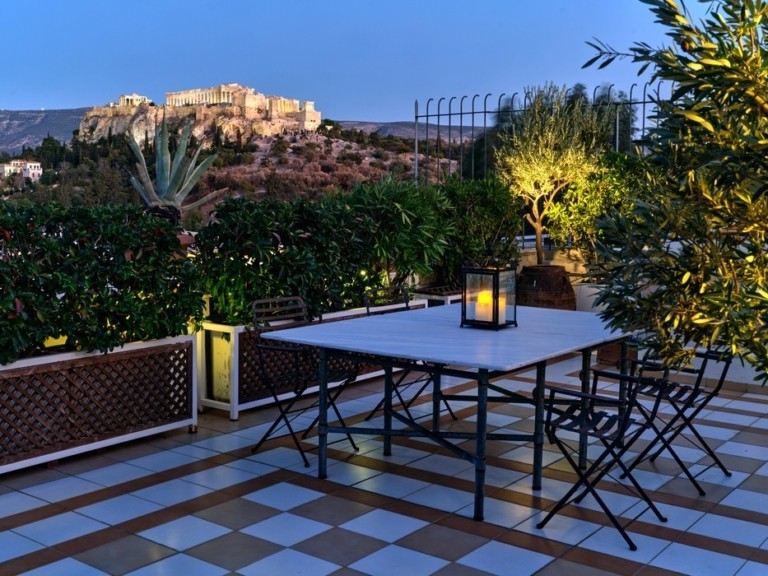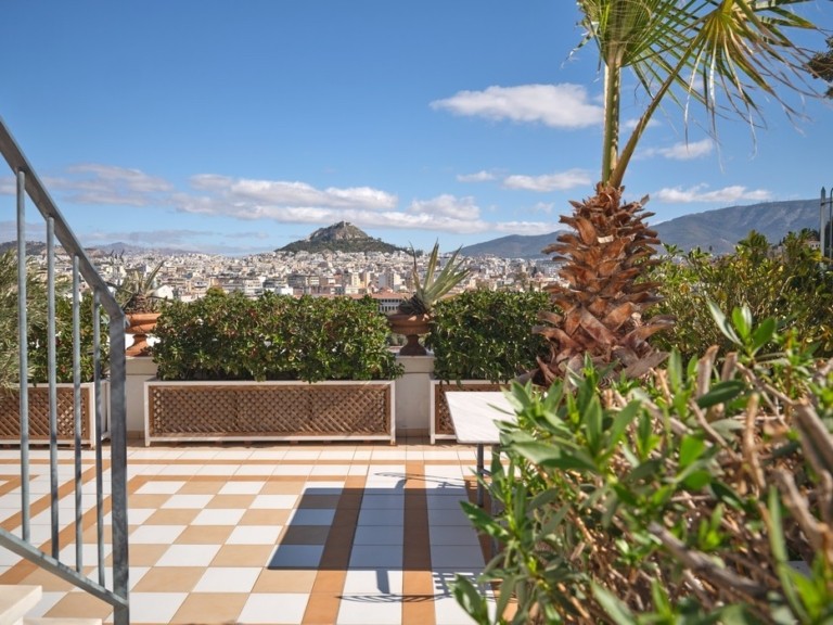 Μια ευρύχωρη βεράντα στον τελευταίο όροφο προσφέρει εκπληκτική πανοραμική θέα 360° στην Αθήνα, που περιλαμβάνει την αρχαία Ακρόπολη, τον Λόφο των Μουσών, την Πνύκα και το Εθνικό Αστεροσκοπείο. Φανταστείτε κάποιον να απολαμβάνει το πρωινό του βλέποντας το χρυσό φως του ανατέλλοντος ηλίου πάνω από τα εμβληματικά αξιοθέατα. Δέος!