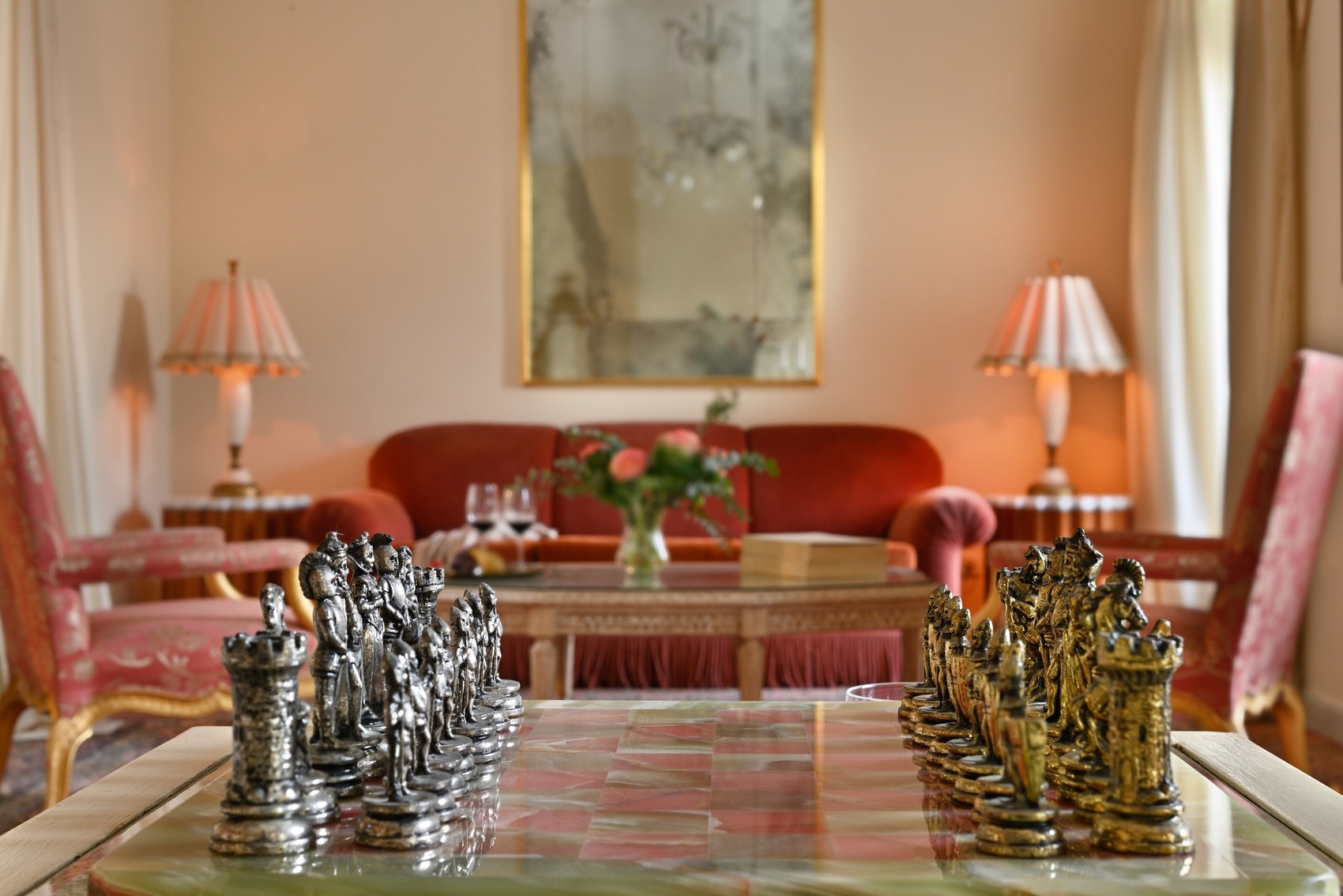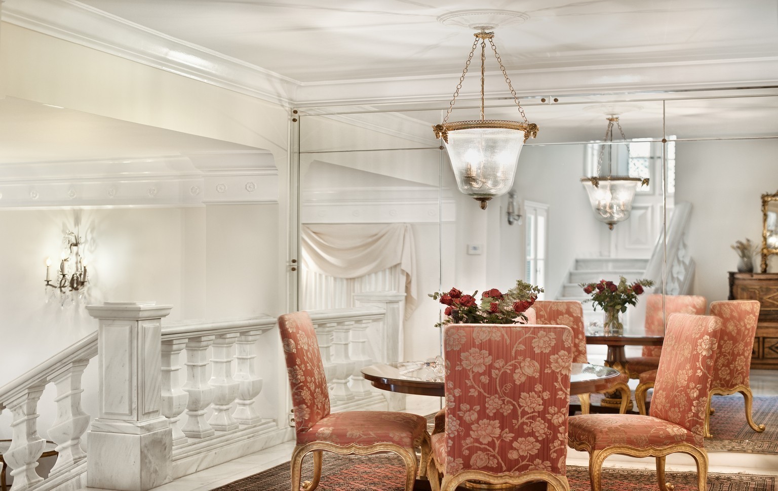Υπάρχουν αξιοπρόσεκτες αντίκες έπιπλα και έργα τέχνης ελληνικής έμπνευσης δημιουργώντας μια κλασική ευρωπαϊκή ατμόσφαιρα.