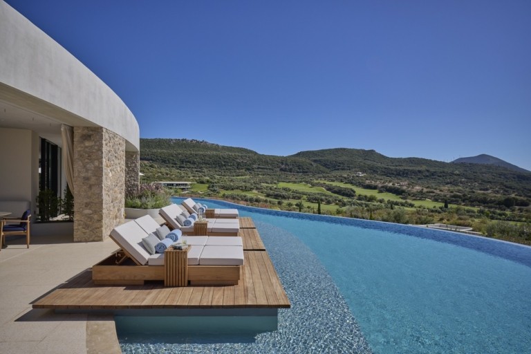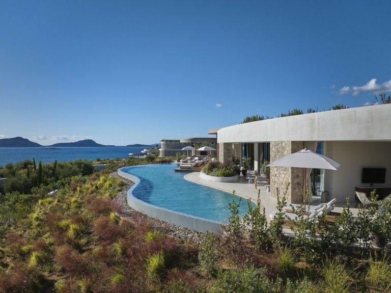 Το εξαιρετικό είναι ότι το μοναδικής αισθητικής αυτό κατάλυμα συνδυάζει την αυτονομία μιας βίλας με τις παροχές εντός πεντάστερου ξενοδοχείου αφού είναι η Royal Villa του Mandarin Oriental, Costa Navarino.