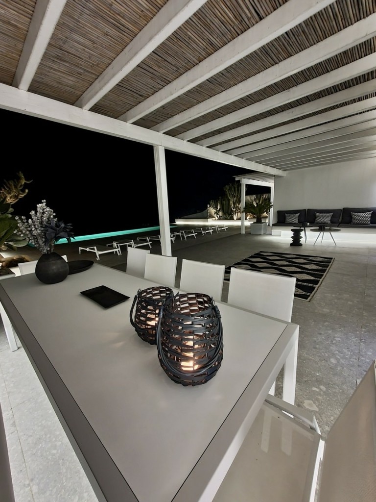 Με μοναδική θέα την χώρα της Μυκόνου και τις υπόλοιπες Κυκλάδες, εναρμονίζεται απόλυτα με το περιβάλλον συνδυάζοντας την παράδοση της ντόπιας αρχιτεκτονικής με σύγχρονες λεπτομέρειες. Ένα υπέροχο σπίτι, μια μοναδική νησιώτικη έπαυλη στην όποια όποιος έχει μείνει κι όποιος θα μείνει στο μέλλον… θα έχει να θυμάται υπέροχες στιγμές…