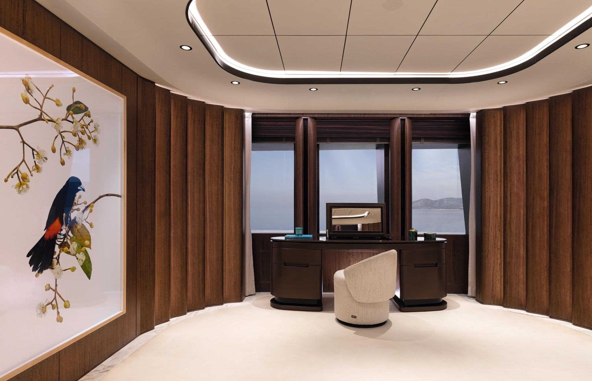Απολαμβάνουμε τον κλασσικό ιταλικό espresso και μου μιλά για την δουλειά του με ενθουσιασμό. «Ο σχεδιασμός σκαφών ισορροπεί ανάμεσα στην αρχιτεκτονική, το interior και τη μηχανική. Το γεγονός ότι κάποιος περνά μεγάλο μέρος της ζωής του μέσα σε έναν yacht το καθιστά ουσιαστικά μια «πλεούμενη» έπαυλη. Οπότε εκτός από όμορφο ένα σκάφος οφείλει να είναι και χρηστικό».