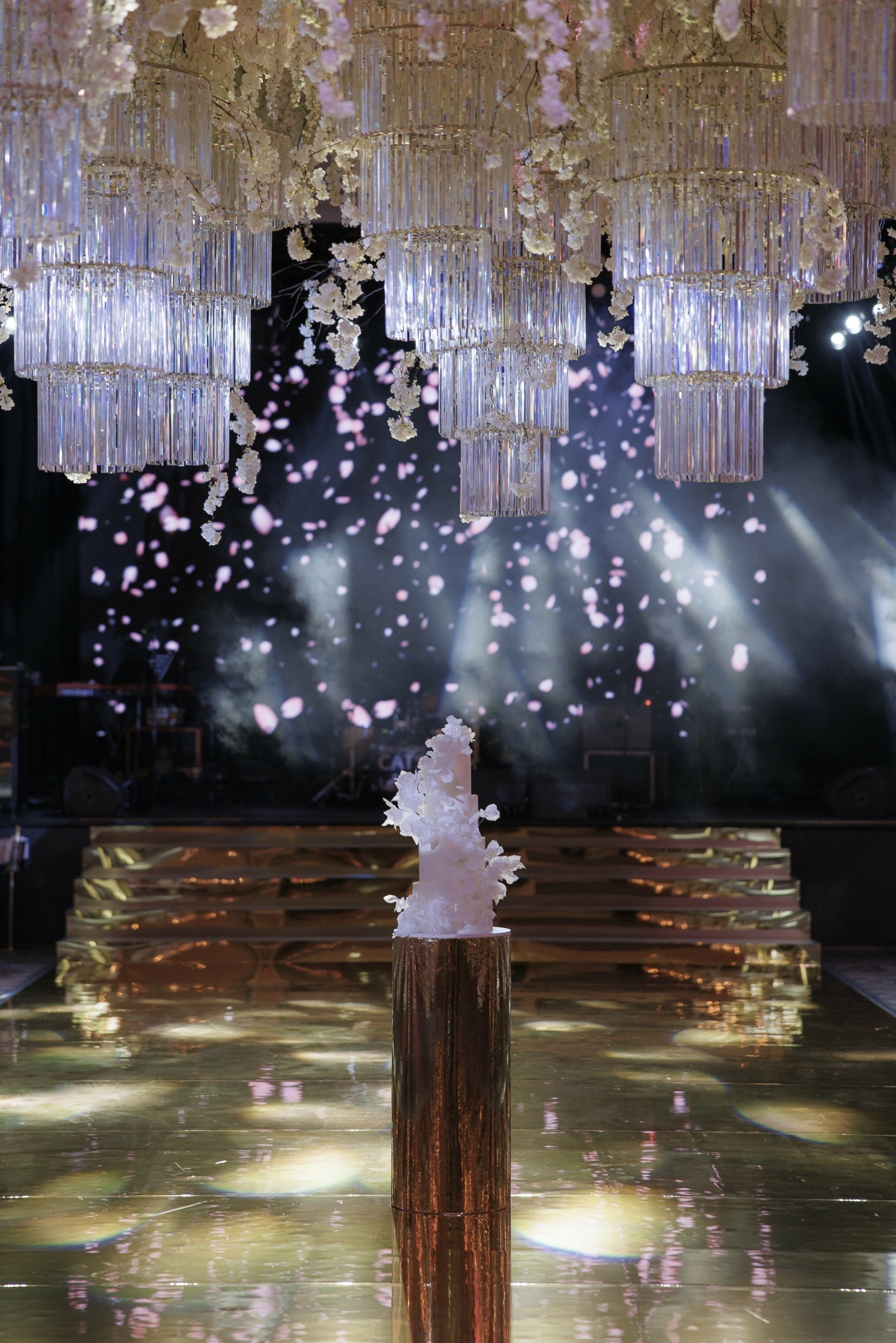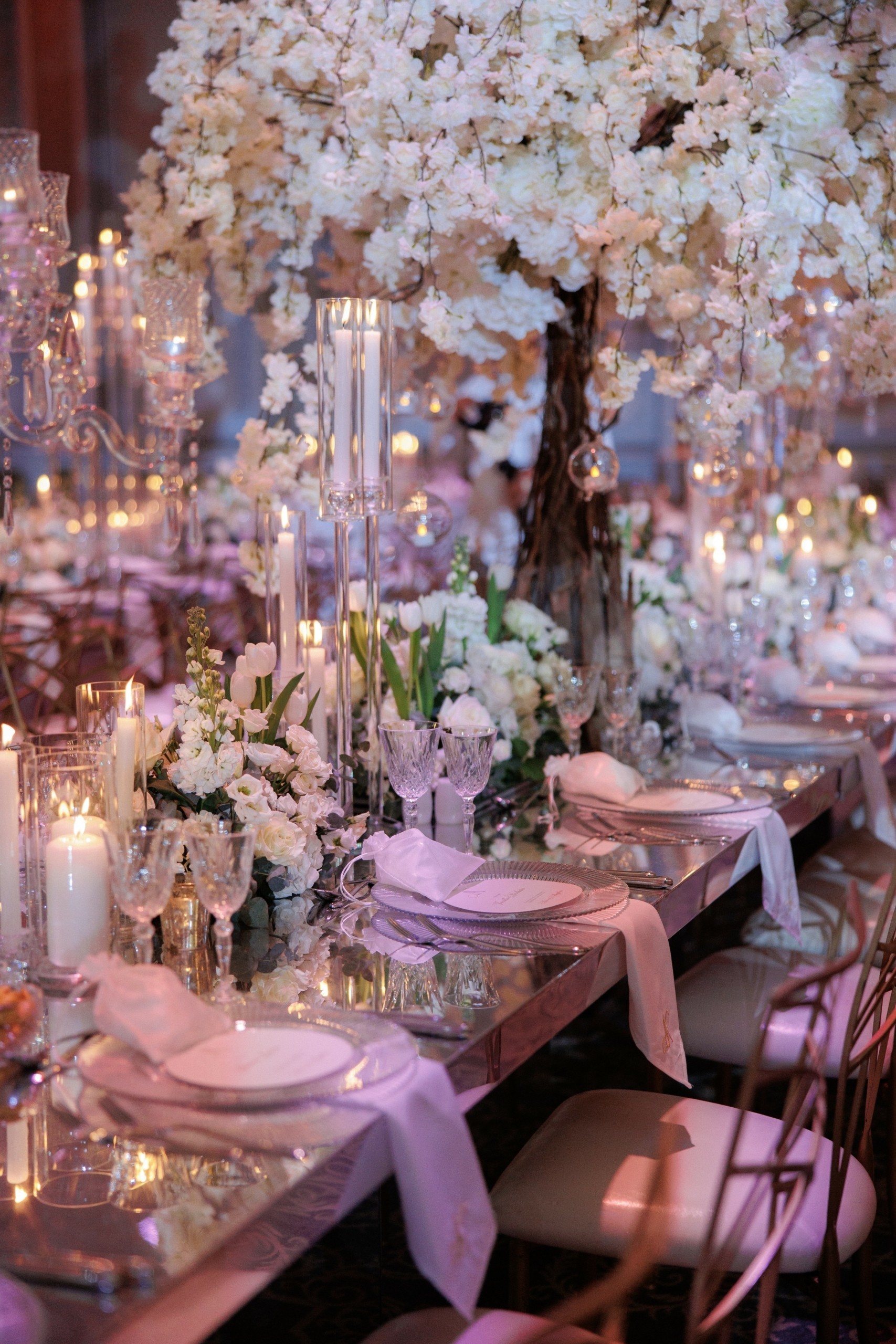 Η κορυφαία εταιρεία Fresh Event που ήταν και οι wedding planners έδωσαν πραγματικό ρεσιτάλ. Ορτανσίες μπλεγμένες με χιλιάδες άσπρα τριαντάφυλλα, English roses, delphinium και mathiola δημιούργησαν στην ballroom του ξενοδοχείου Parklane a Luxury Collection Resort ένα μυθικό σκηνικό με πάμπολλα κεριά να αντανακλούν πάνω στους καθρέφτες συμβάλλοντας στην γκλάμορους ατμόσφαιρα.