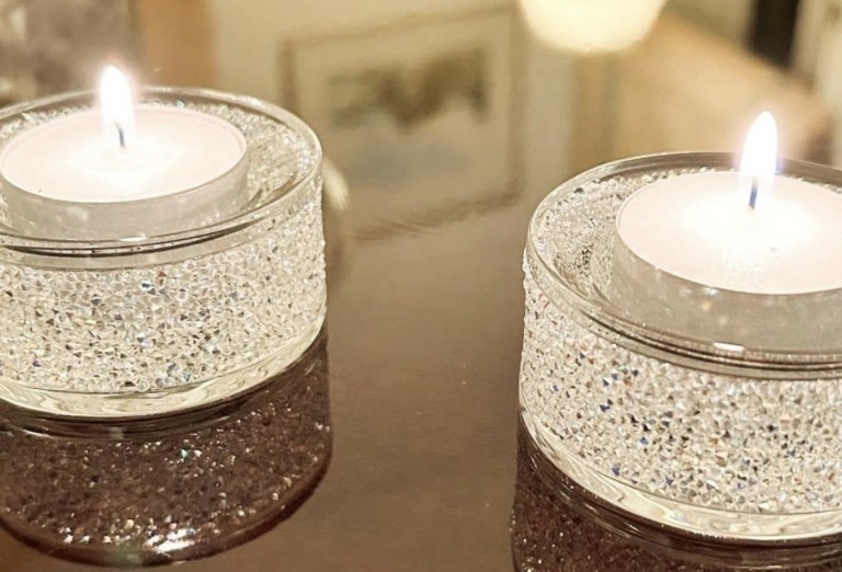 Οι μπομπονιέρες ήταν κρυστάλλινα κηροπήγια με την υπογραφή Swarovski
