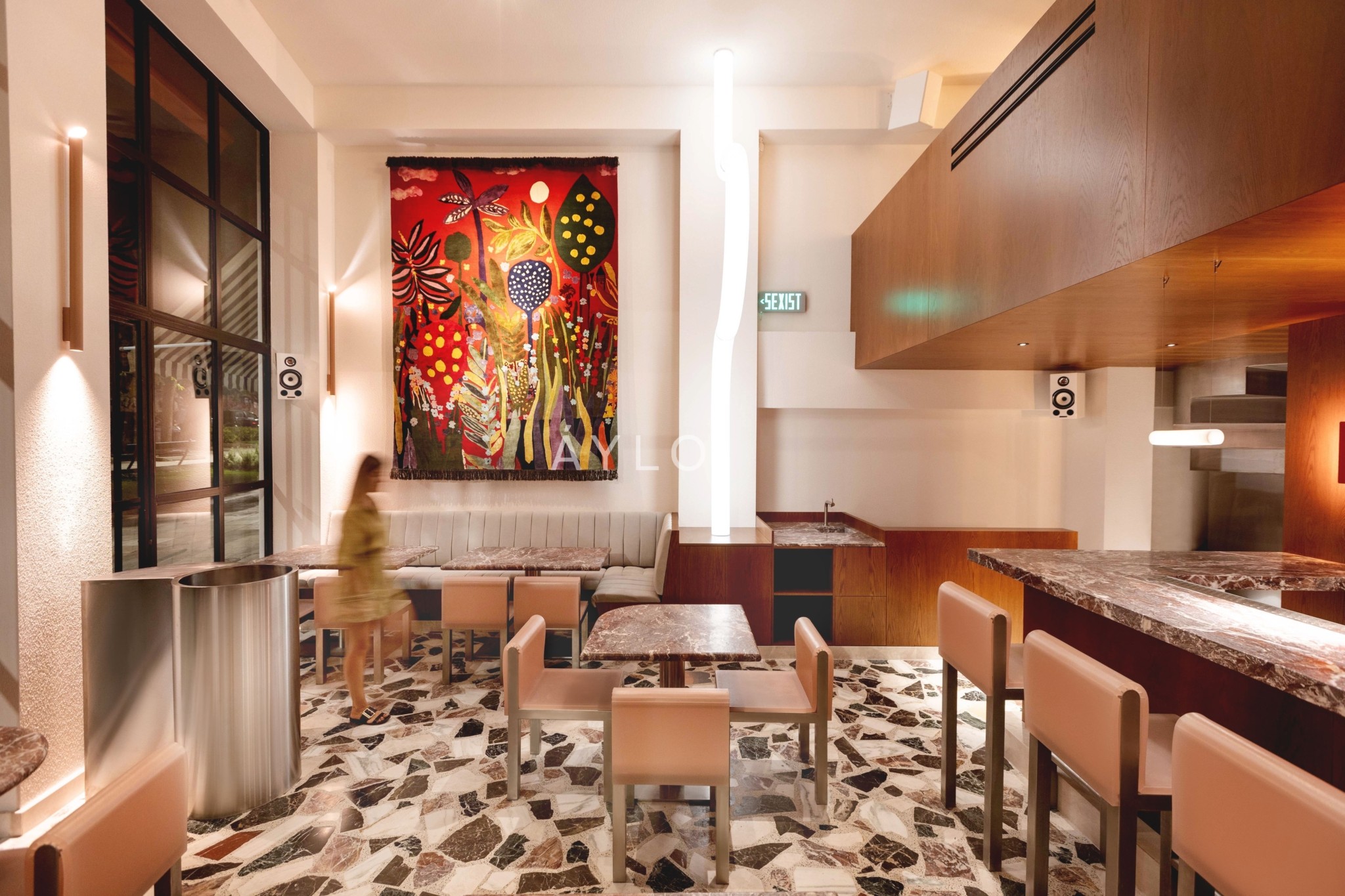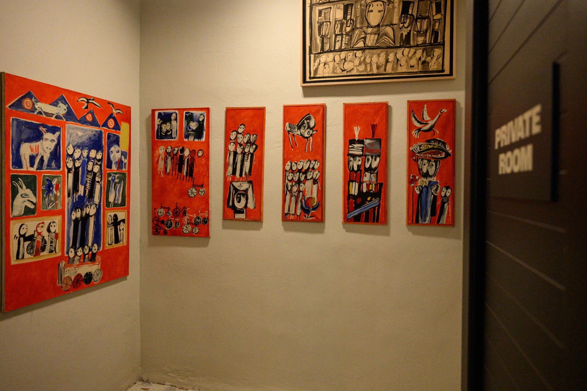Εργα διεθνών καλλιτεχνών όπως ο Γιάννης Βαρελάς, ο Κωνσταντίνος Κακανιάς, η Ραλλού Παναγιώτου και ο Αντωνάκης προστίθενται στην υψηλή γευστική εμπειρία του χώρου.