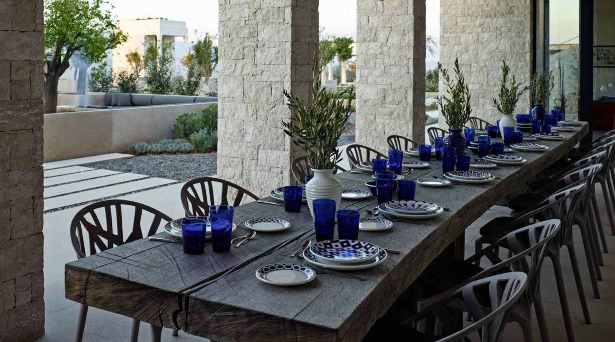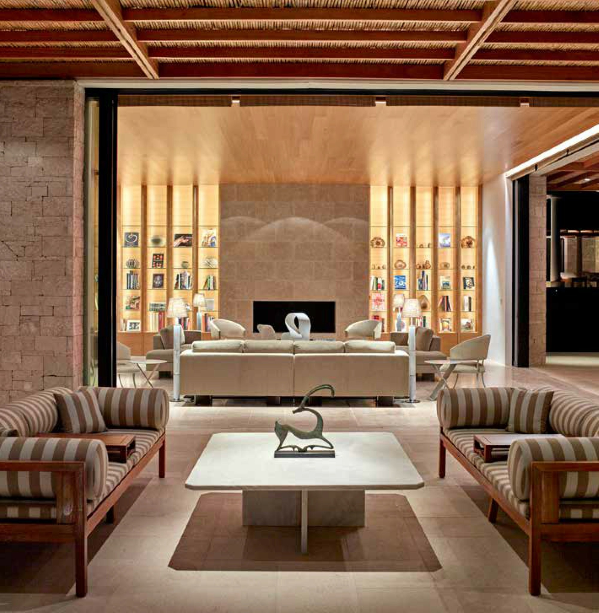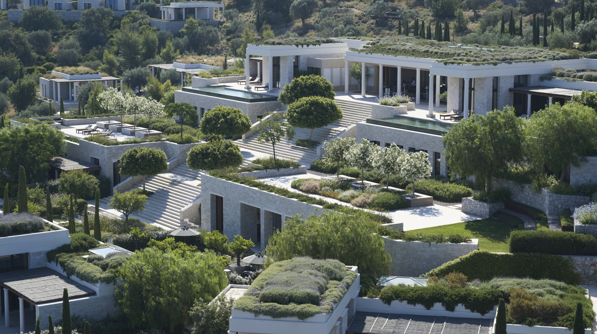Η φύση επιβάλλεται ως αναγκαίο στοιχείο. Κυριαρχούν οι πισίνες με πράσινη επένδυση ενώ οι ευωδιαστοί κήποι καταπραΰνουν τις αισθήσεις. Τα υλικά κατασκευής είναι φυσικά και δένουν με το «αρχαϊκό τοπίο».