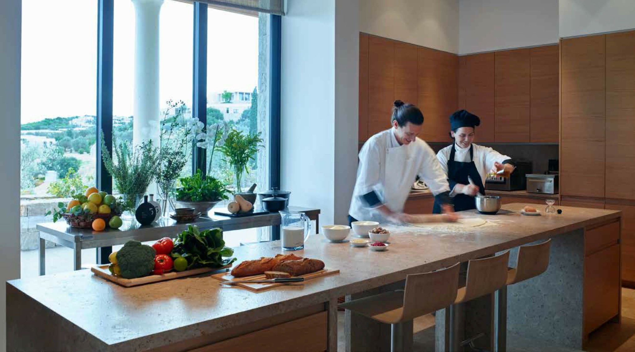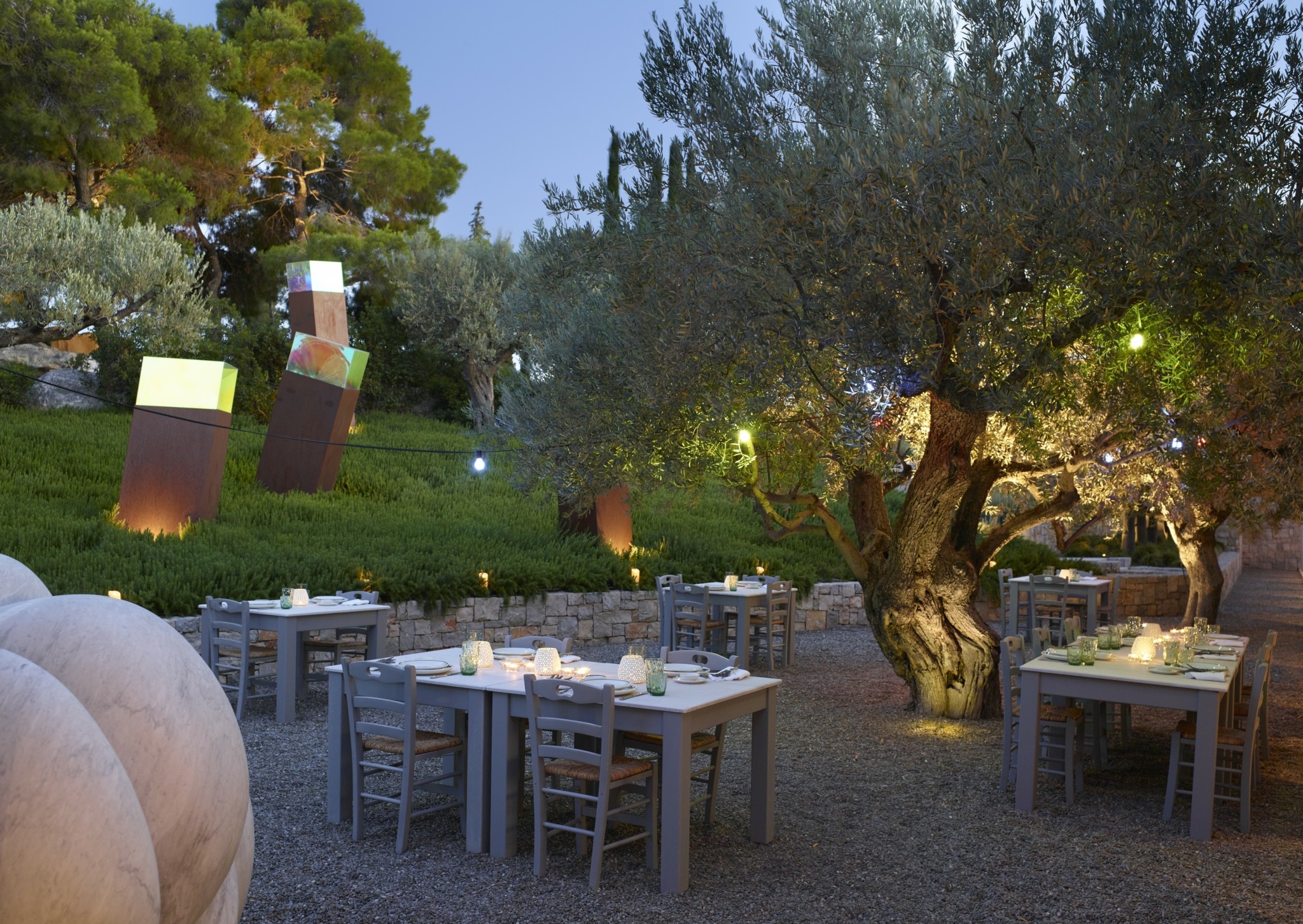 Η πλούσια βλάστηση της περιοχής συνθέτει έναν επίγειο παράδεισο γεμάτο από χρώματα και μυρωδιές. Δένδρα, λουλούδια και τοπικά βότανα από την Ελληνική γη κυριαρχούν στο κάδρο. Υπάρχει ακόμη και κήπος με βιολογικά προϊόντα έτοιμα να τα αξιοποιήσουν οι σεφ.
