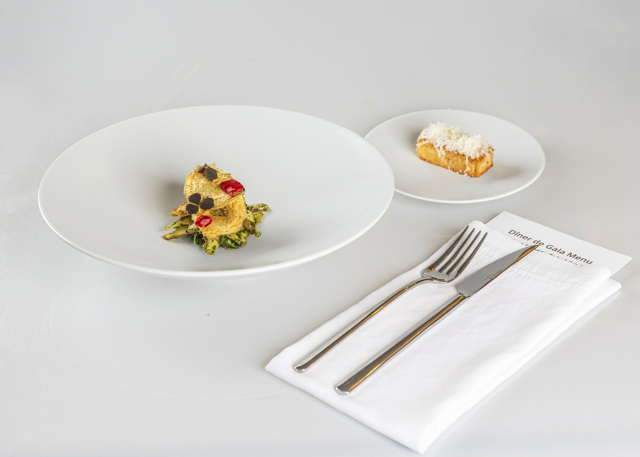 Το πρώτο πιάτο παρέπεμπε σε ζωγραφικό πίνακα. Οι καλεσμένοι μαγεύονται αλλά αδυνατούν να καταλάβουν τον δαιμόνιο συνδυασμό των γεύσεων. Οι σεφ εξηγούν «Πρόκειται για μπακαλιάρο με citrus, verbena berry και sesame umeboshi» Οσο τα μακαρόνια; Ηταν mushroom rigatoni με true morels και chanterelle.