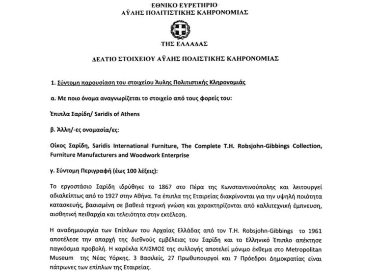 Η αναβίωση του ιστορικού οίκου Σαρίδη – Συμμετέχει σε έκθεση στο Παρίσι, εντάσσεται στην Unesco και παγιώνει τα έπιπλά του ως νέα μνημεία (pics, vid)