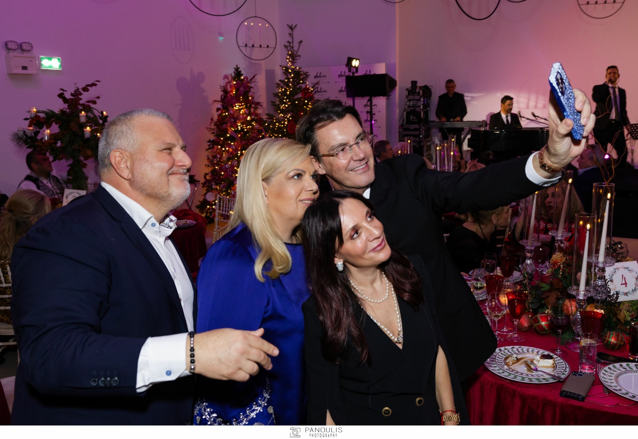 Ευδιάθετοι όπως πάντα ήταν οι Γιάννης και Πηνελόπη Μαυρή αλλά και η Λιάνα Βουράκη – των γνωστών κοσμηματοπωλείων- που φιλοτέχνησε ένα επίχρυσο βραχιόλι με χαμόγελο που δόθηκε σε κάθε καλεσμένο ως ανάμνηση της βραδιάς και γούρι για τον νέο χρόνο.