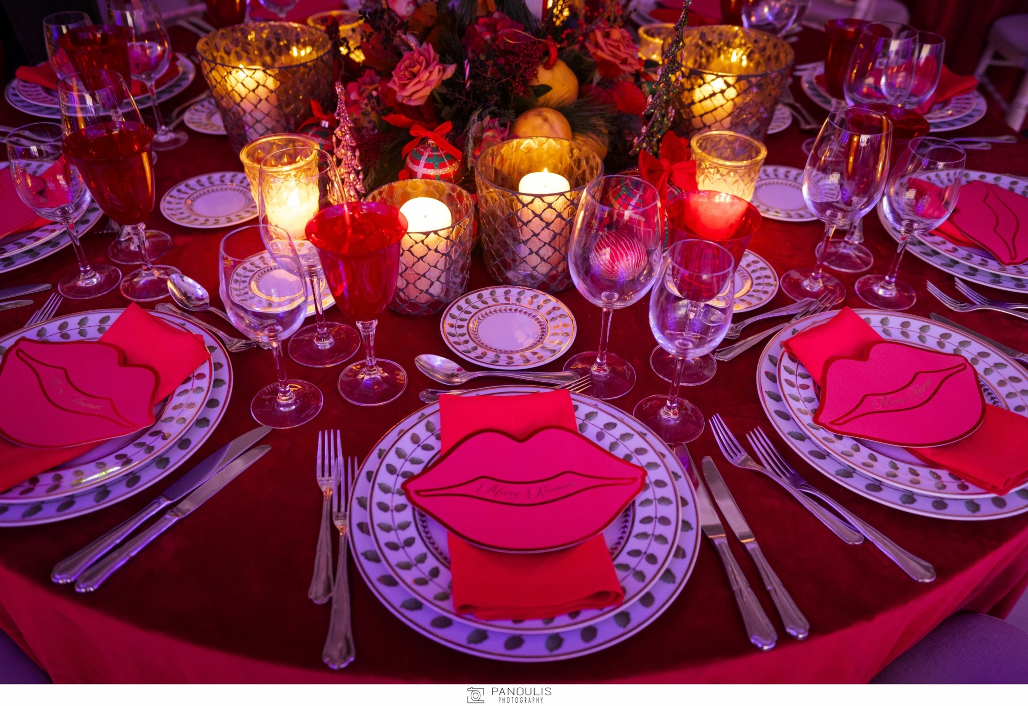 Ο διακεκριμένος interior designer Μάρκος Μαχαιρόπουλος μεταμόρφωσε τον χώρο «ντύνοντάς τον» στα κόκκινα και ο περίφημος Pavlos διακόσμησε τα τραπέζια με λουλούδια.