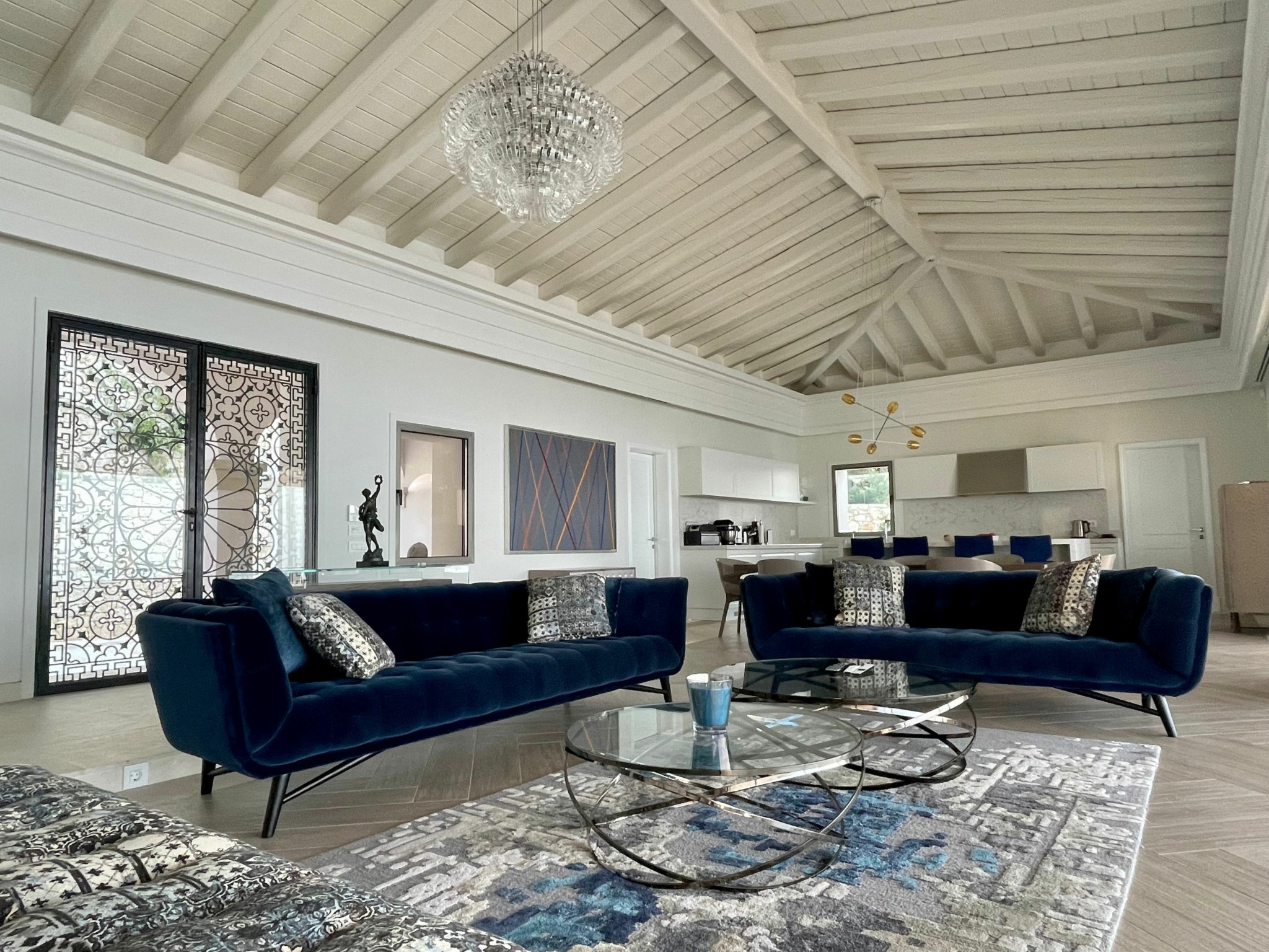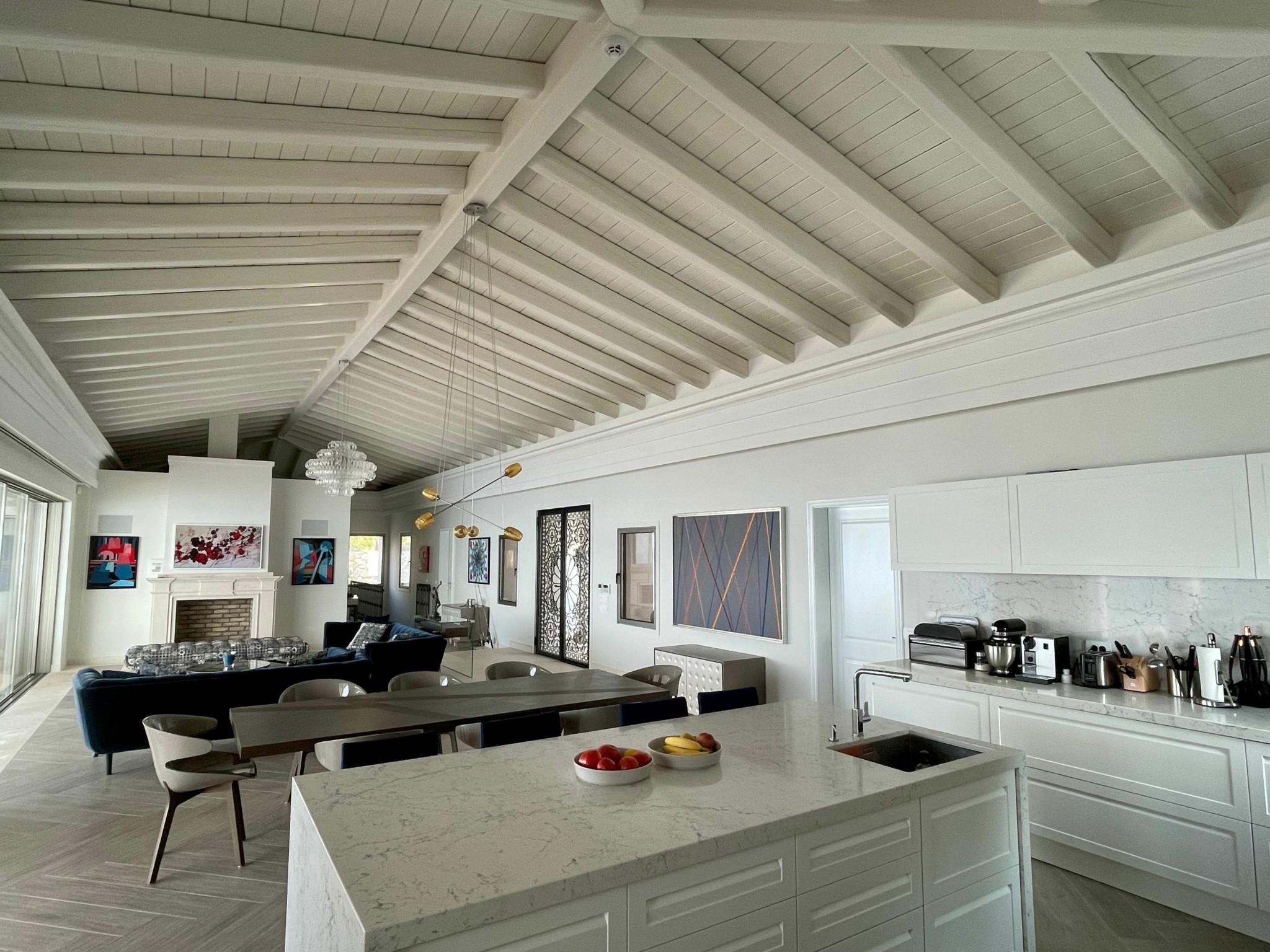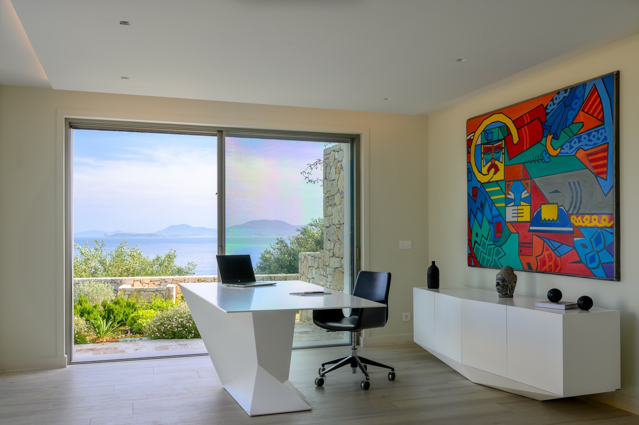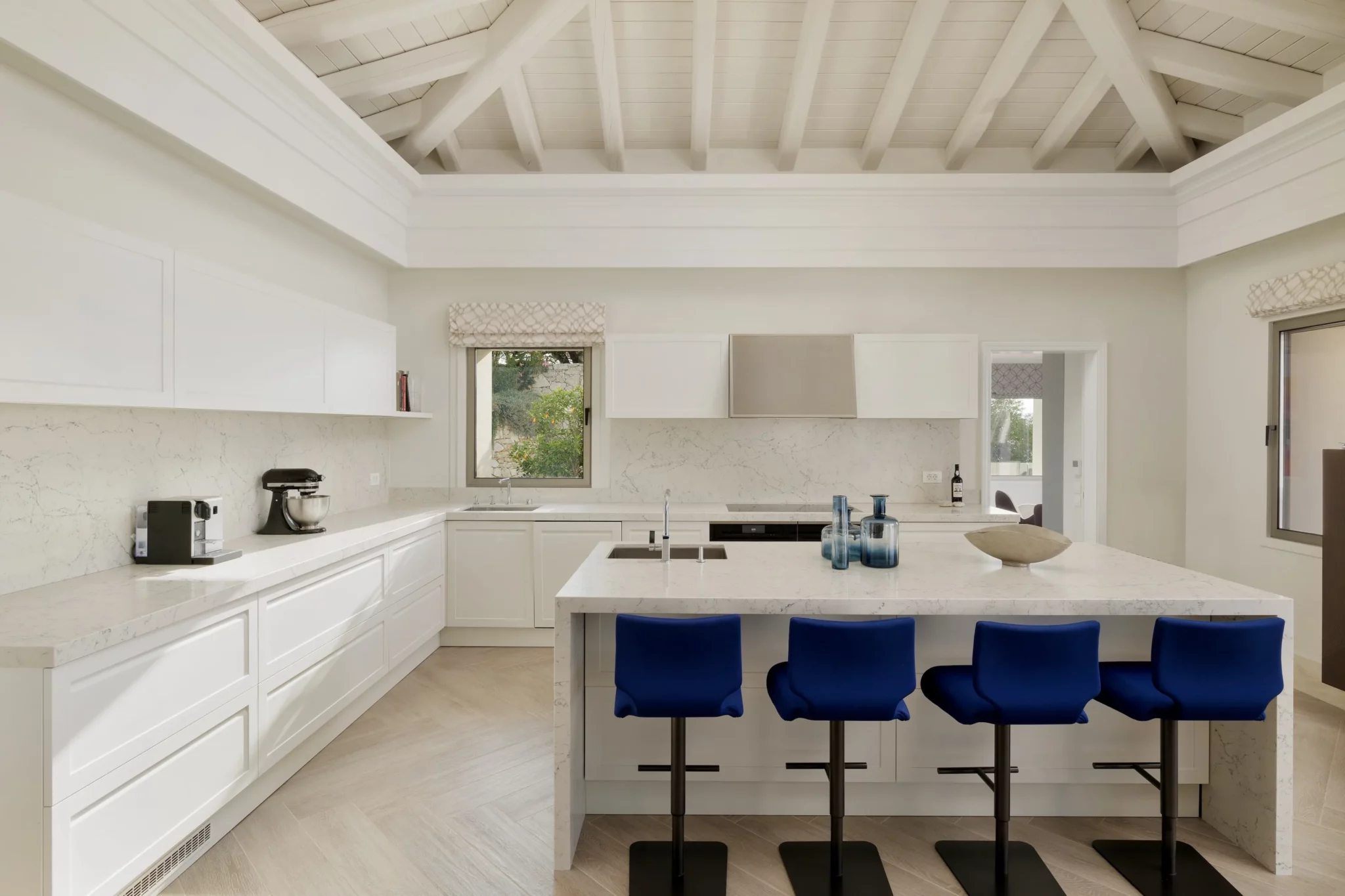Το ευρύχωρο σαλόνι/τραπεζαρία και η κουζίνα προσφέρουν θέα στο απέραντο γαλάζιο αλλά και άφθονο φυσικό φως. Όλοι αυτοί οι χώροι παρέχουν πρόσβαση στους εξωτερικούς χώρους και στην πισίνα.