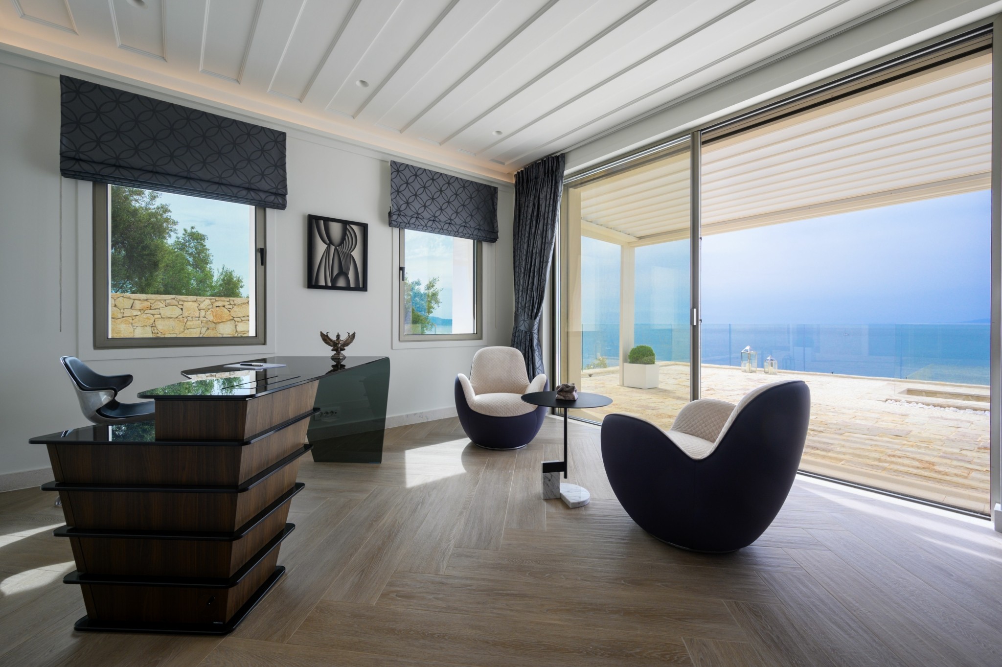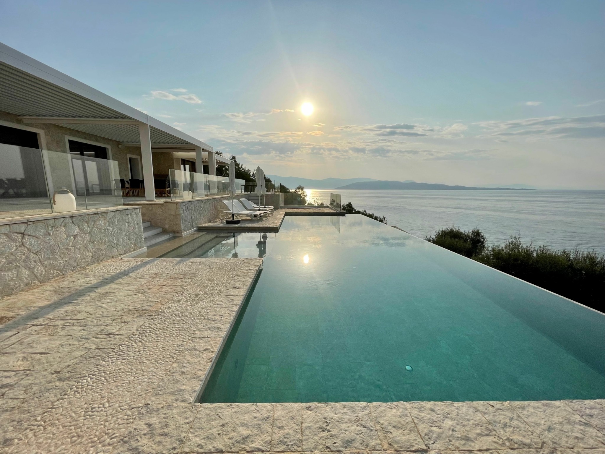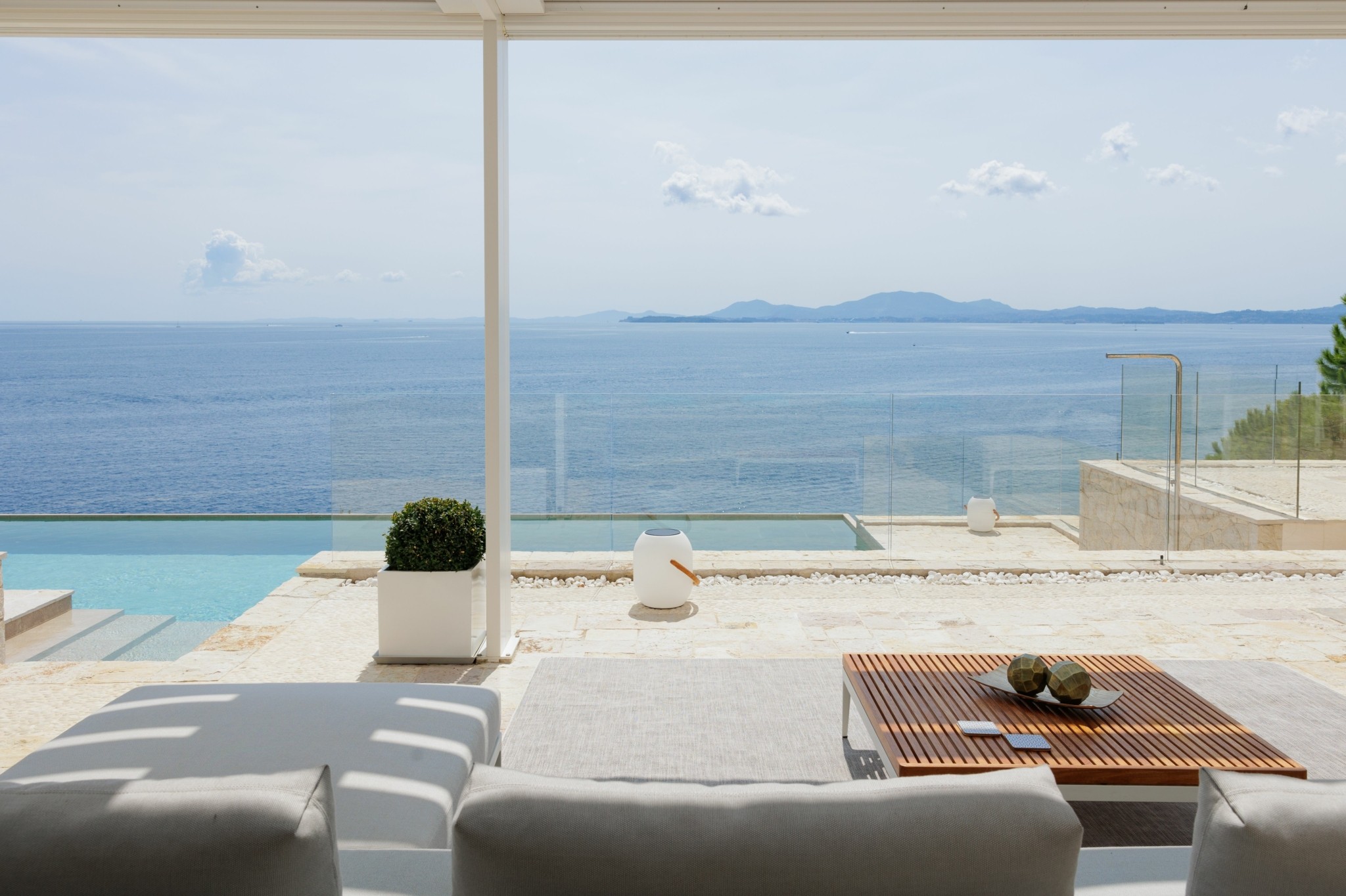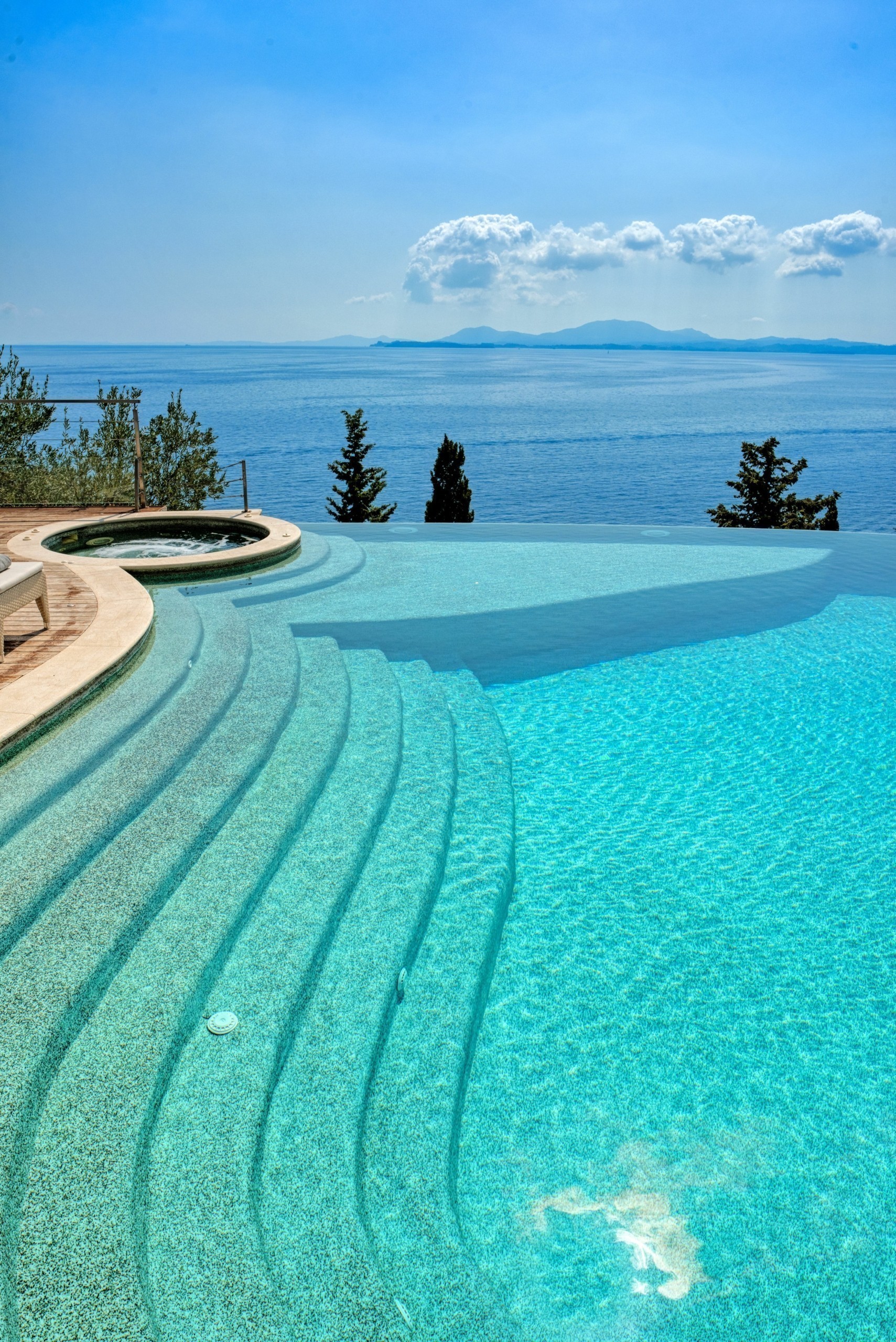 Η άνετη βεράντα οδηγεί σε μια πισίνα υπερχείλισης ελεύθερου σχήματος με εκπληκτική θέα στη θάλασσα. Το δίχως άλλο μαγεία!