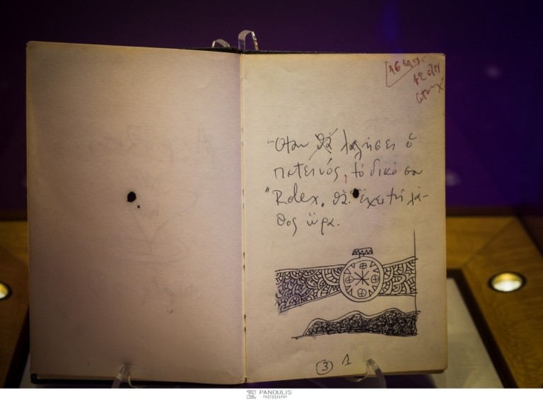 Η Χλόη Ακριθάκη μίλησε συγκινητικά για τον πατέρα της αναλύοντας ένα από τα πρώτα του έργα στο οποίο με νόημα και διττή έννοια υπογράμμιζε « Όταν λαλήσει ο πετεινός το δικό σου «Rolex» θα έχει τη λάθος ώρα. Ένα έργο που είχε πάρει θέση στην αίθουσα του dinner.