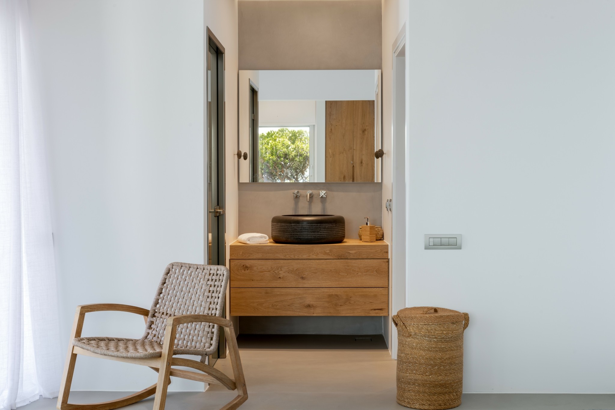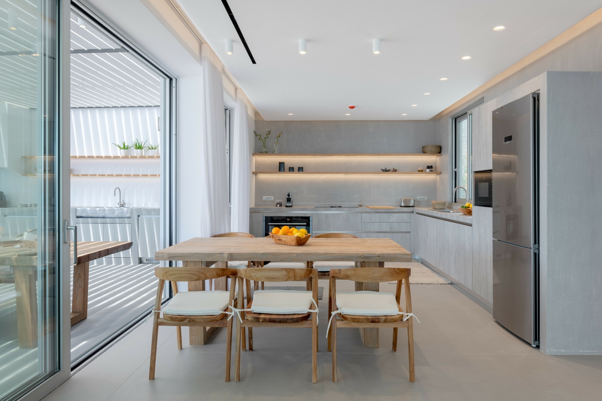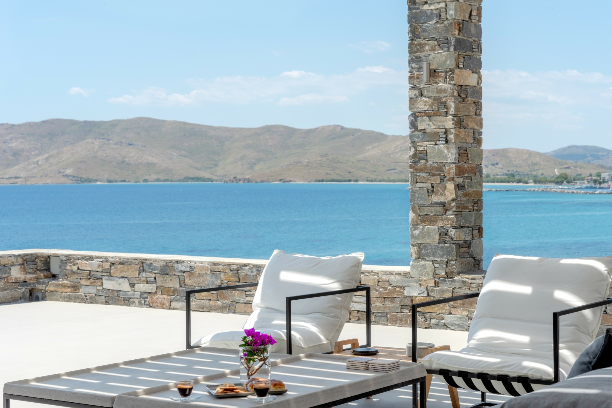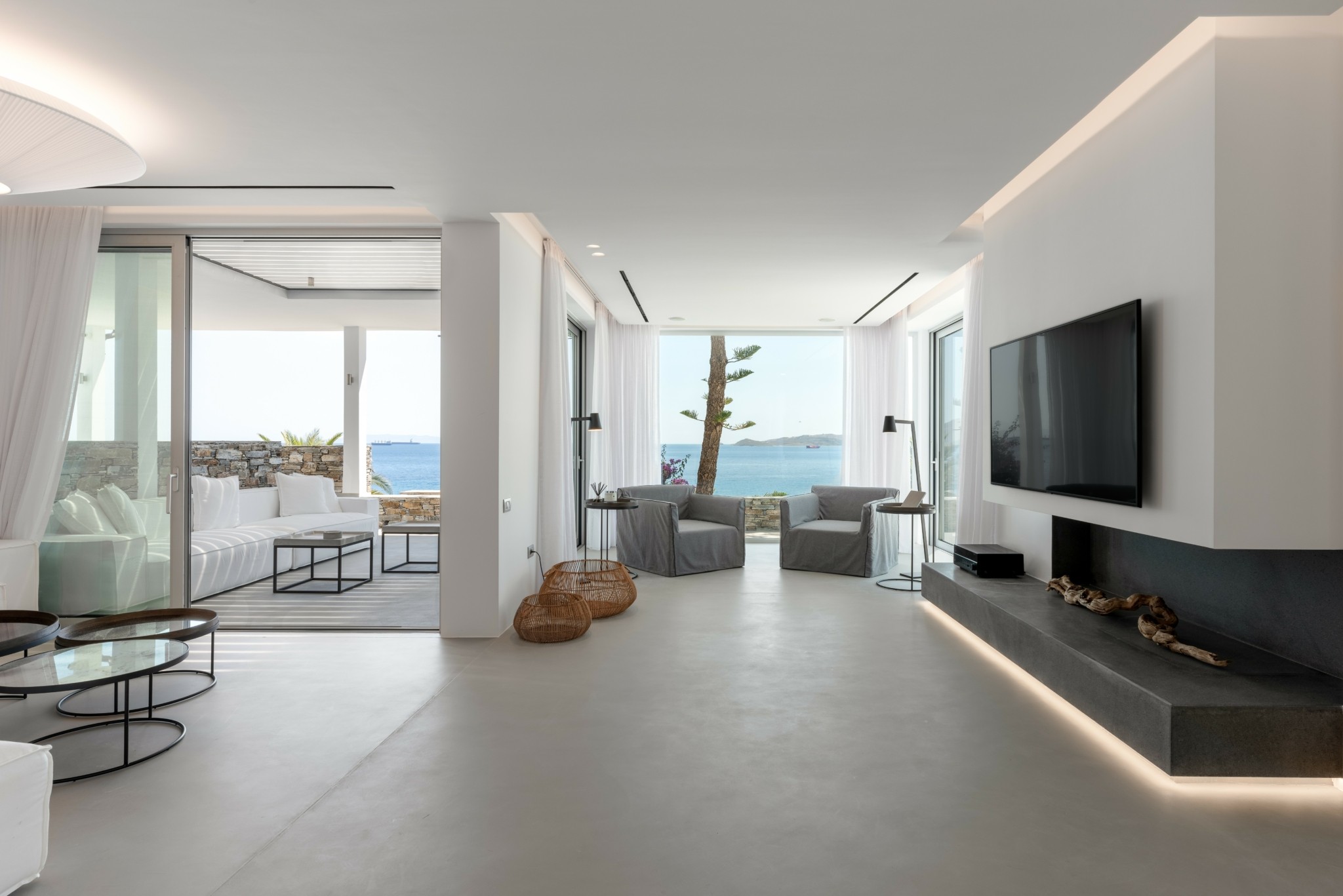 Βρίσκεται σε ύψωμα και επομένως δεσπόζει στην περιοχή, κάποιοι εξωτερικοί χώροι θυμίζουν την πλώρη καραβιού, τα παράθυρα φινιστρίνια ενώ διαθέτει πολλά ευρύχωρα δωμάτια, εξωτερική επένδυση με ντόπια πέτρα, υπέροχους κήπους, ιδιωτικό λιμανάκι και μοναδική θέα… το απέραντο γαλάζιο του Αιγαίου.