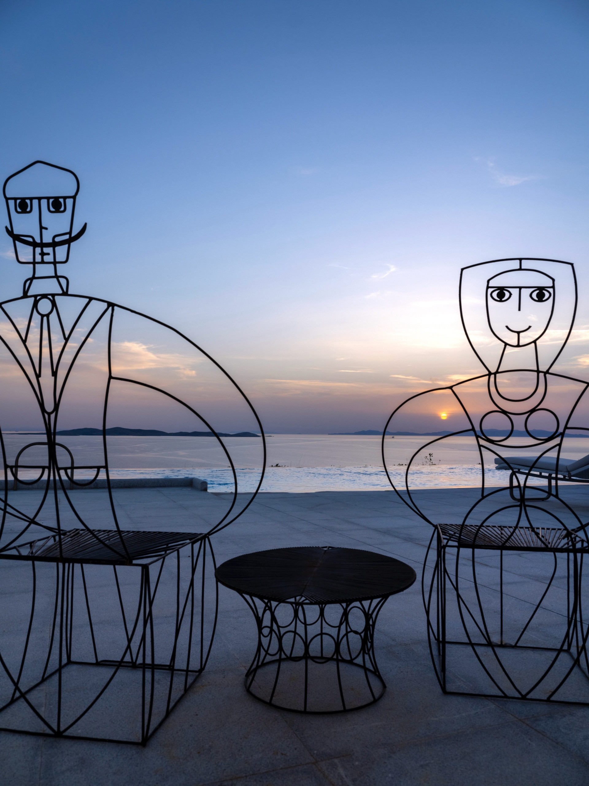 Υπάρχουν εξάλλου τοίχοι με φιλοτεχνημένα ψάρια Κόι, τα τυχερά γιαπωνέζικα ψάρια τα οποία μάλιστα τονίζονται με ειδικό φως. Αγάπη στην τέχνη, στη φύση και στην άνετη διαβίωση. Περιμετρικά τζάμια προσδίδουν μια αίσθηση χαλαρότητας καθώς αντανακλούν τι άλλο, από το μπλε της θάλασσας.
