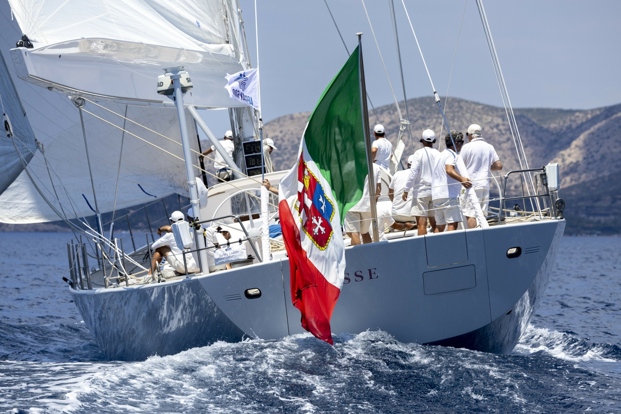 Το περασμένο Σάββατο έκανε προπόνηση στο στενό μεταξύ Μακρονήσου και Σουνίου και την Κυριακή το μεσημέρι ανάμεσα σε άλλα 12 σκάφη της κατηγορίας maxi ξεκίνησε τον ιστιοπλοϊκό μαραθώνιο των 600 ναυτικών μιλίων γύρο από το Αιγαίο. Αρχικά με πορεία προς τη Μήλο με βορειοανατολικό άνεμο στην συνέχεια περνώντας μέσα από την Καλντέρα της Σαντορίνης και συνεχίζοντας νοτιότερα προς την Κάσο. Το ιταλικό σκάφος άφησε αριστερά την Κάρπαθο, και παράπλευσε την Ρόδο, την Κανδελιούσσα, την Κω, την Κάλυμνο, το Φαρμακονήσι, το Αγαθονήσι και την αγαπημένη του Πάτμο. Διέσχισε το απρόβλεπτο Ικάριο Πέλαγος και πλέοντας ανάμεσα σε Μύκονο και Δήλο πέρασε από την Γυάρο, την Κέα και τερμάτισε στο Σούνιο. Η συνολική απόσταση είναι, περίπου, 605 ν.μ. και η διαδρομή είναι σχεδιασμένη «από ιστιοπλόους για ιστιοπλόους» με στόχο να προβάλλει και να διαφημίσει την Ελλάδα και τις ομορφιές της.