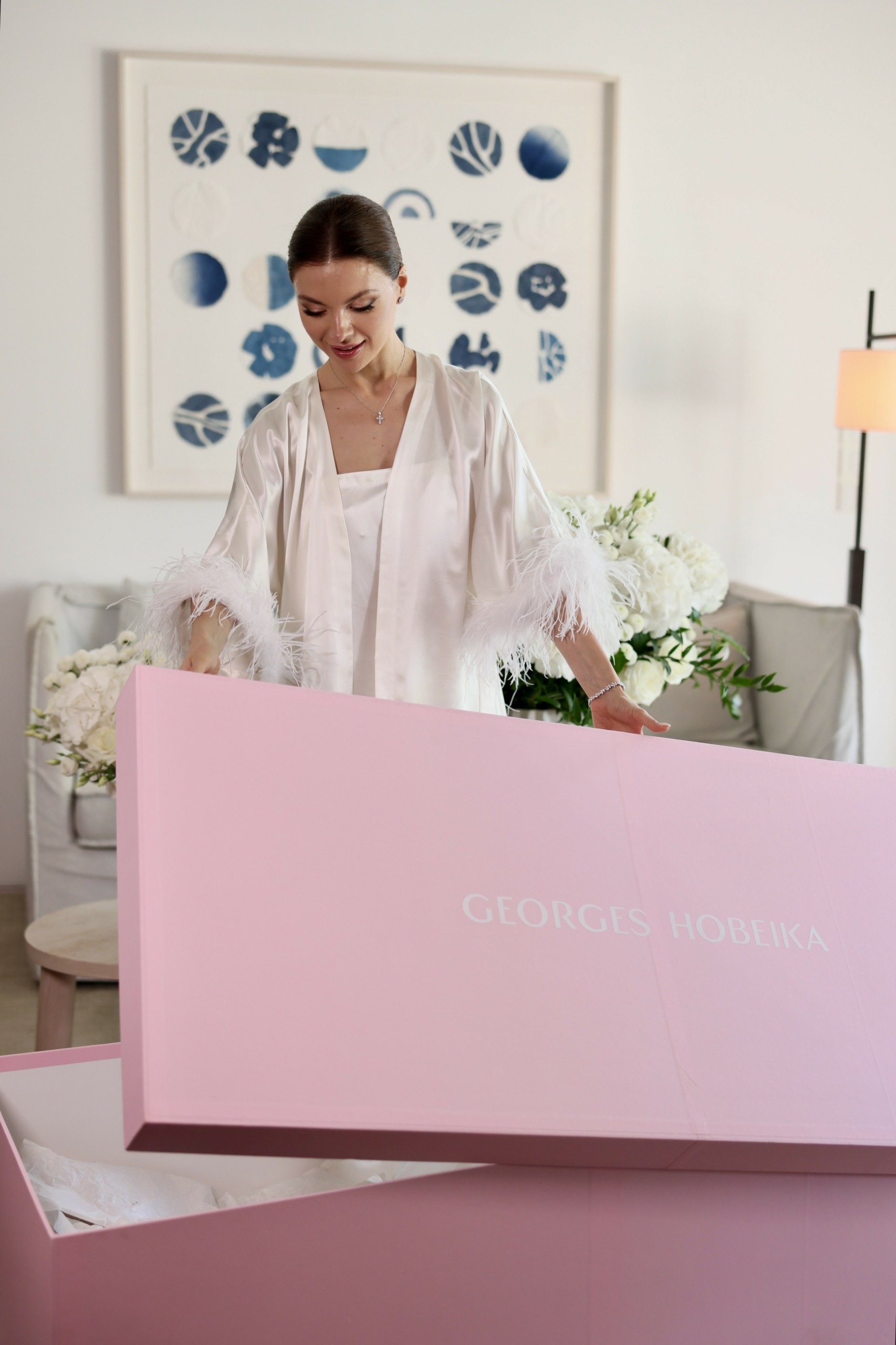 Παρά τον προβληματισμό των καλεσμένων για το ποιο οίκο θα επιλέξει η πρώην Μις Λίβανος Maya Reaidy, η πρωταγωνίστρια της βραδιάς προτίμησε να αποφύγει κάποιον από τους γνωστούς Γαλλικούς οίκους και να επιλέξει το νυφικό της από τον “Georges and Jad Ηobeika”, Λιβανέζικο οίκο υψηλής ραπτικής.