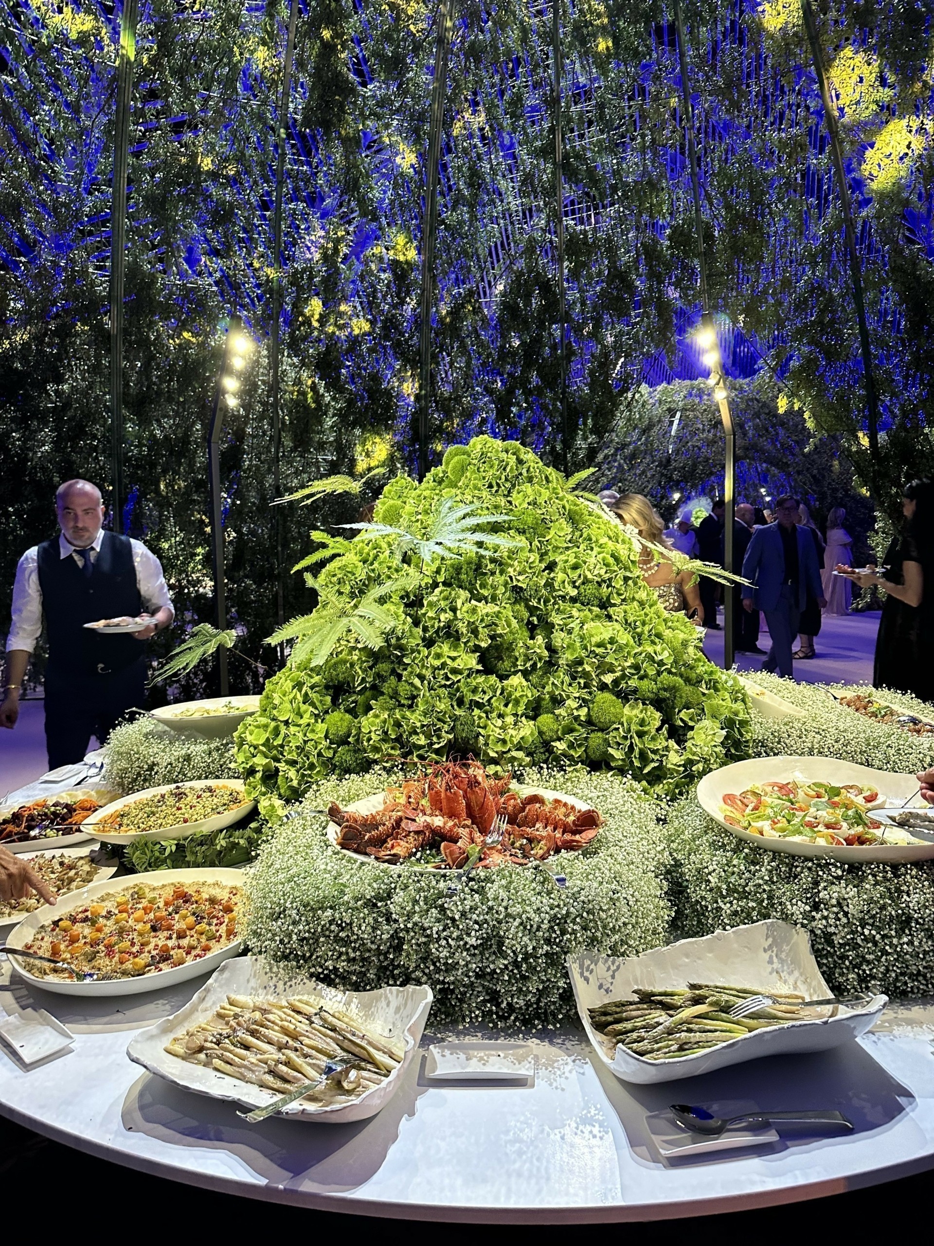 Το art de la table με τα πορσελάνινα σερβίτσια ήταν μυθικό όπως άλλωστε και το ελληνολιβανέζικο μενού που διέθετε γκουρμέ νοστιμιές από Μεσόγειο αλλά και Μέση Ανατολή. Οι Λιβανέζοι συνεργάστηκαν με την Aria Catering και ότι πιο εκλεπτυσμένο μύησε τους καλεσμένους – εκτός από τις γνωστές τους γεύσεις- και στις νοστιμιές του τόπου μας