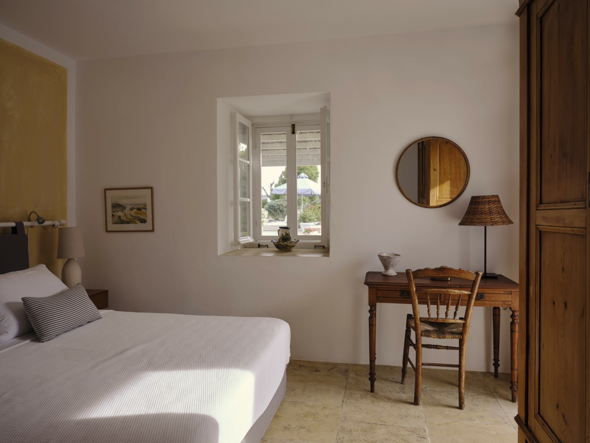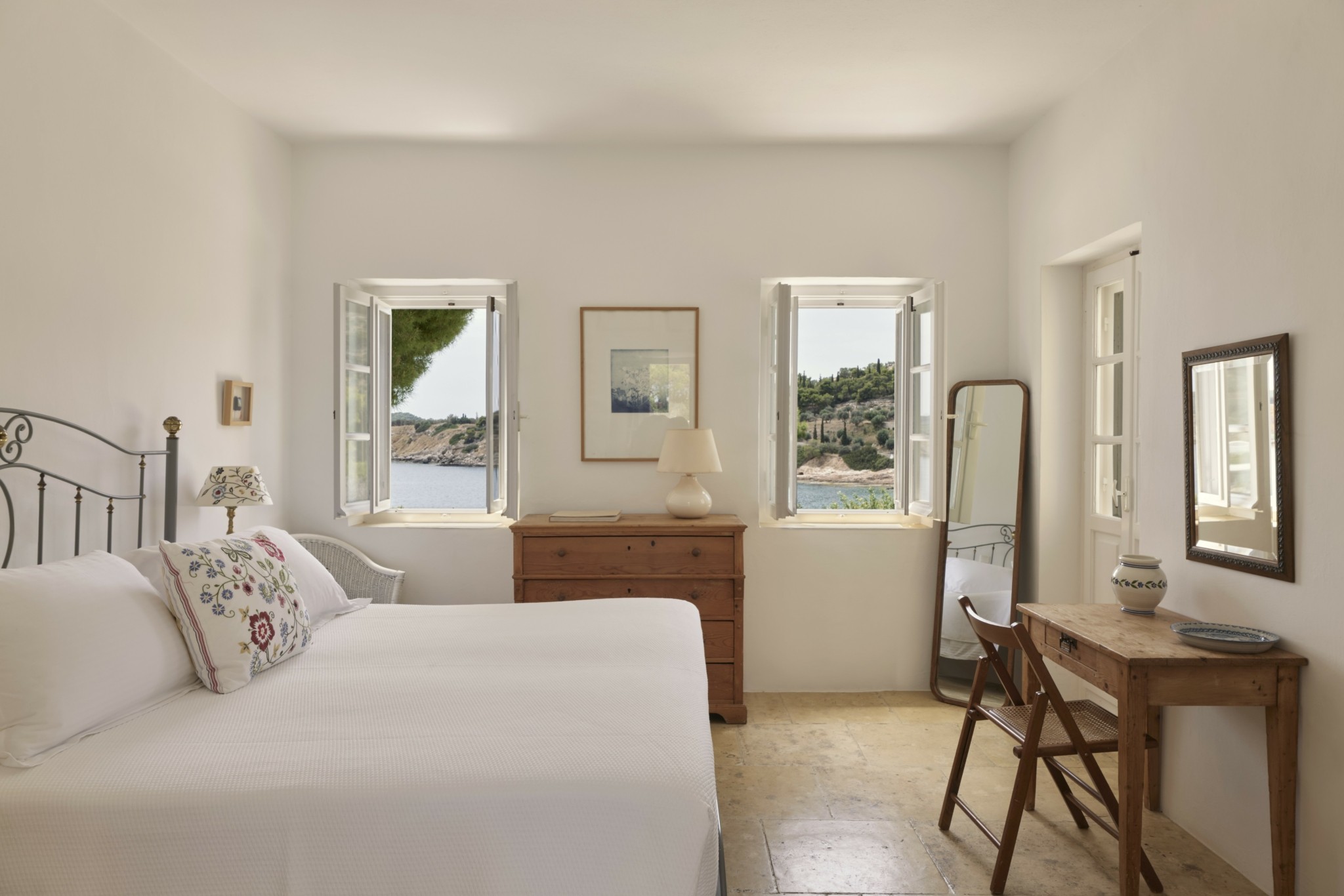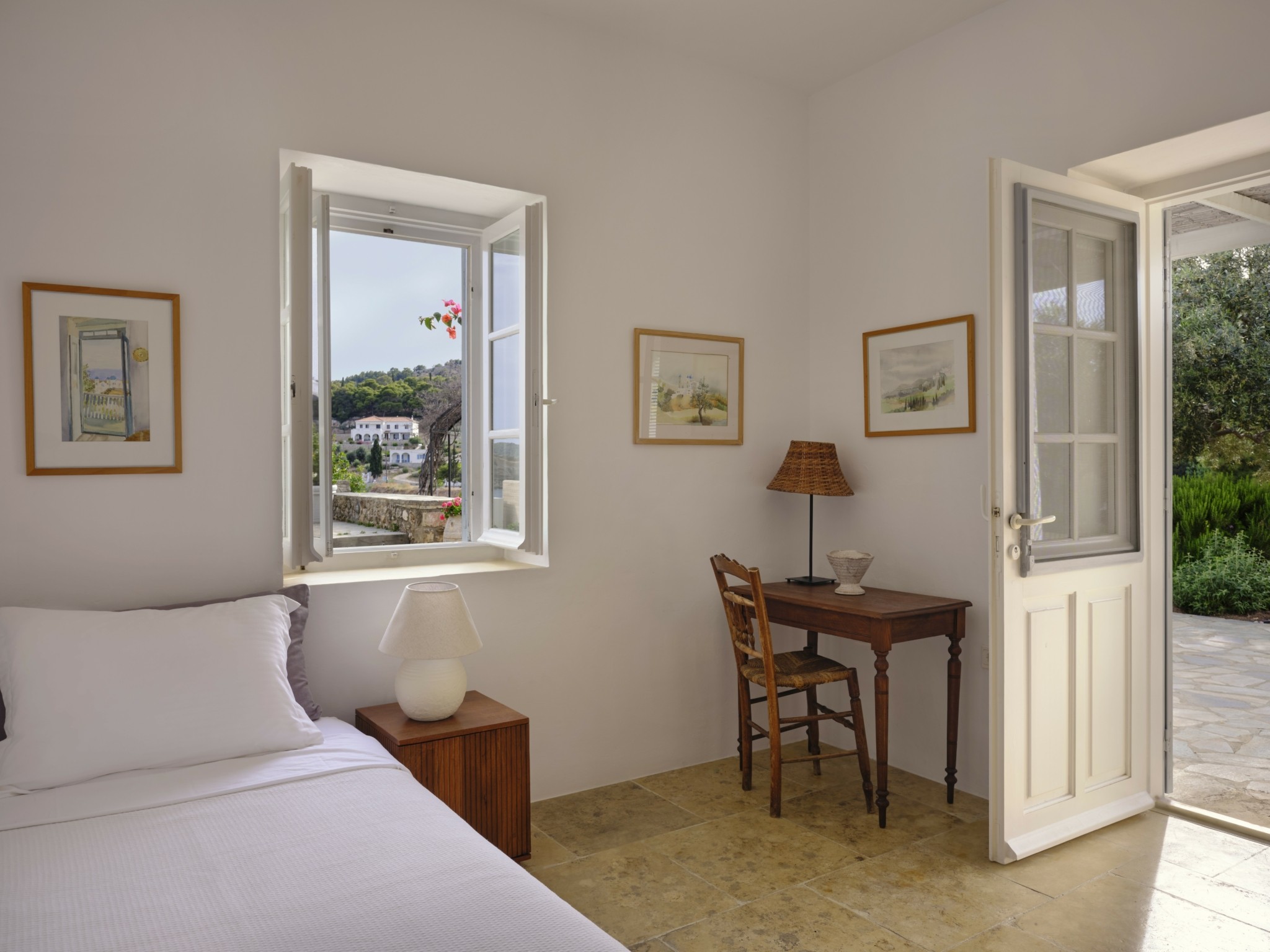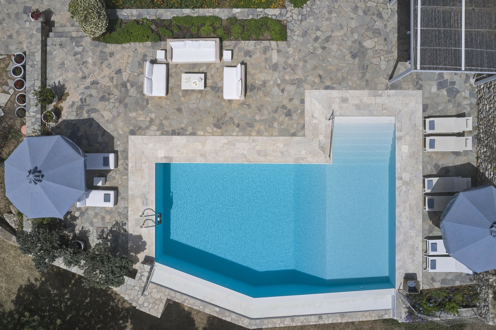 Τα δωμάτια ανοίγονται στους κήπους, προσφέροντας συνεχή επαφή με τη φύση. Τέσσερα από τα υπνοδωμάτια οδηγούν κατευθείαν στην πισίνα υπερχείλισης με πανοραμική θέα στη θάλασσα, ενώ η Master Suite, απομακρυσμένη από τα υπόλοιπα, παρέχει απόλυτη ιδιωτικότητα με έναν καταπράσινο κήπο.
