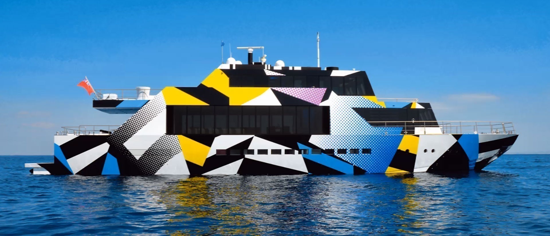 Κάπως έτσι προέκυψε και το εκκεντρικό του σκάφος Guilty, το πιο εκκεντρικό σκάφος που διασχίζει τις ελληνικές θάλασσες. «Το Guilty ξεκίνησε με μια διαδραστική ιδέα που είχαμε με την Ιβάνα Πορφίρη, την αρχιτέκτονα που το επιμελήθηκε. Της ζήτησα συγκεκριμένη διάταξη χώρων και στο τέλος προέκυψε κάτι που θύμιζε container –ship».