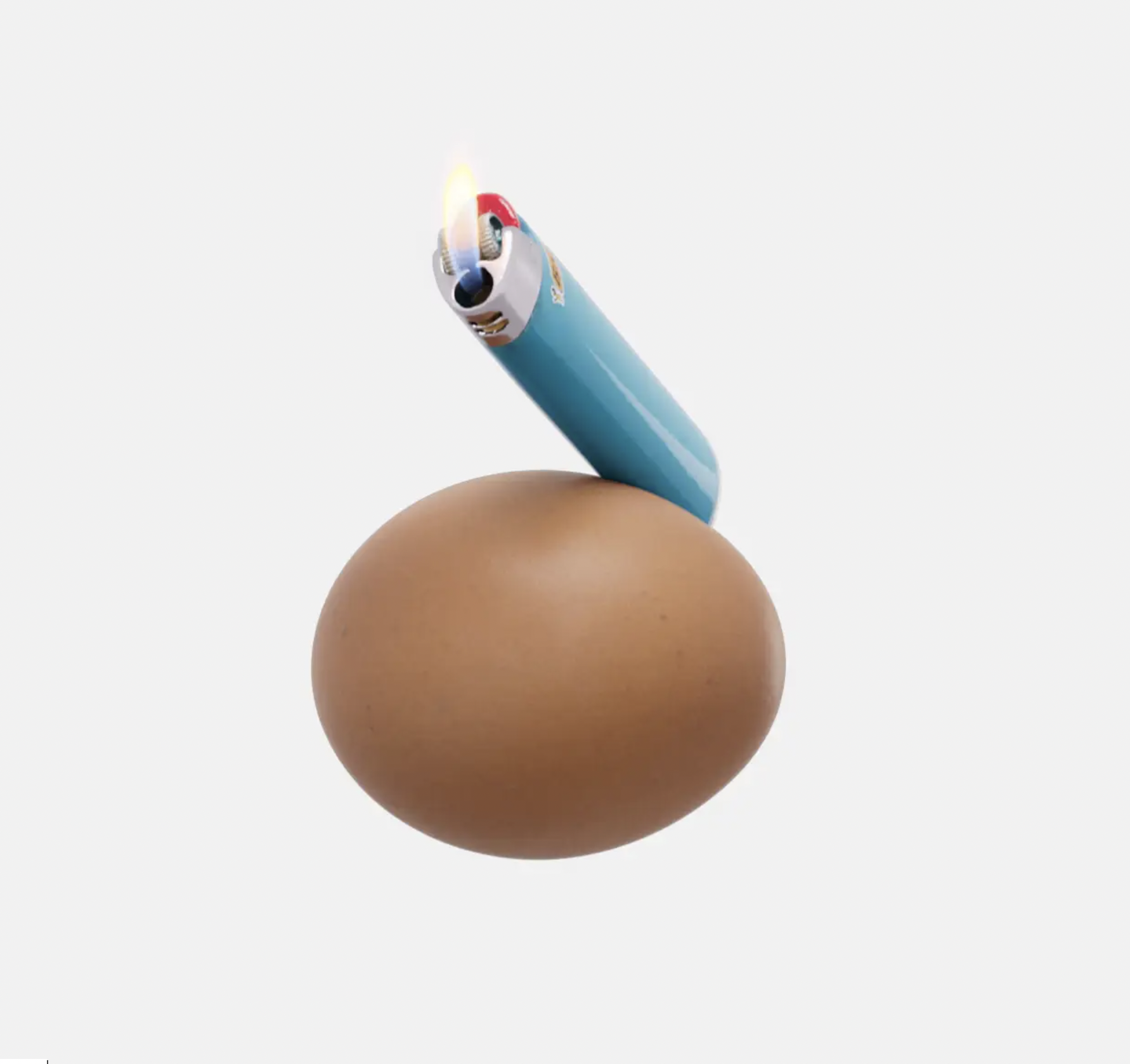 Παρατηρώ ένα λευκό μπουκάλι Coca Cola ενωμένο με μια πίπα, σαν αυτές που κάπνιζαν οι παππούδες μας. Nα είναι του Jeff Koons ή του Maurizio Catellan; «Δικό μου!», μου λέει και με εκπλήσσει. «Συνδυασμός Warhol και Duchamp!»