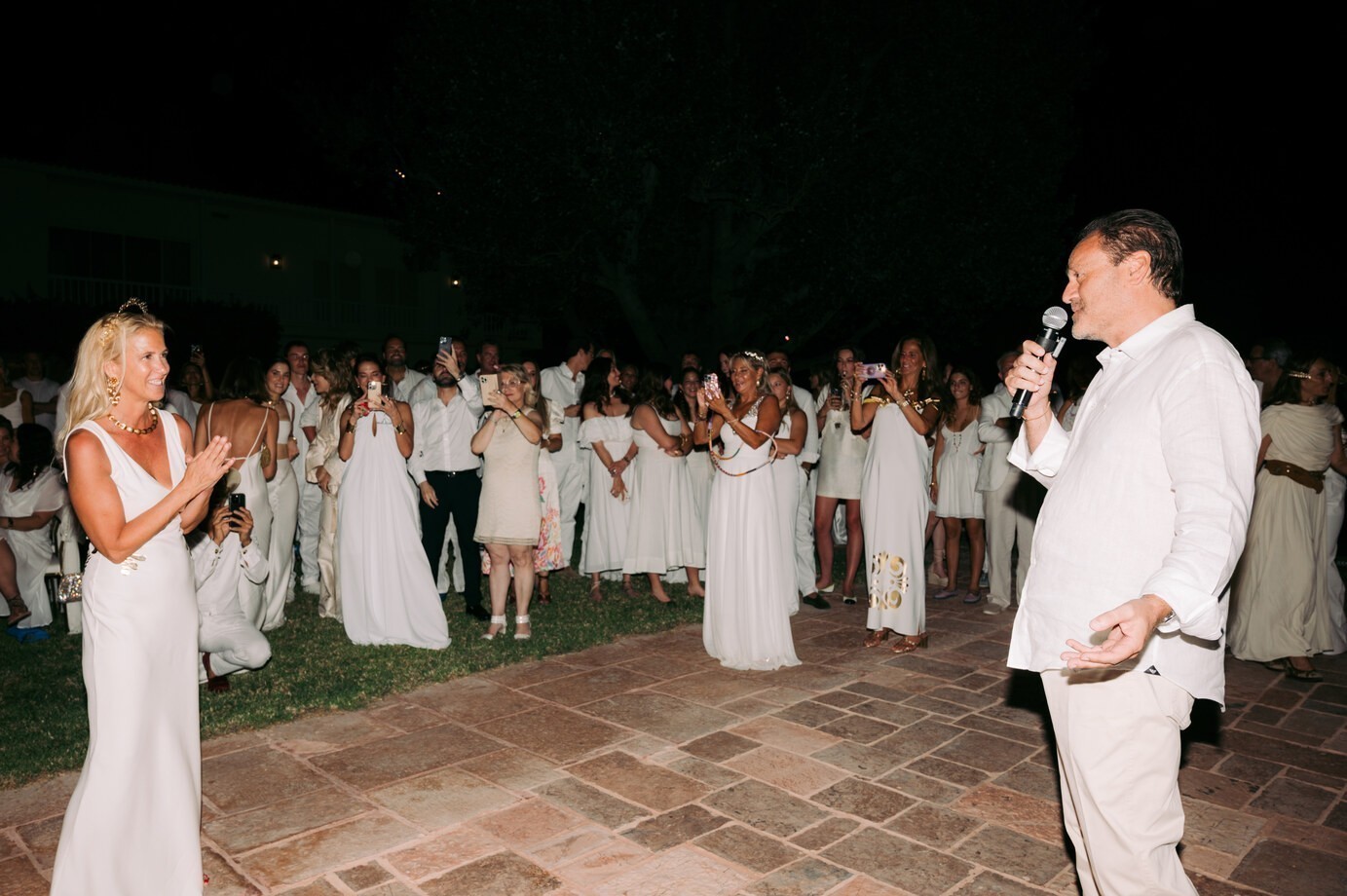 Οι κυρίες ήταν ντυμένες στα λευκά όπως και οι άνδρες που επέλεξαν ολόλευκα κοστούμια.