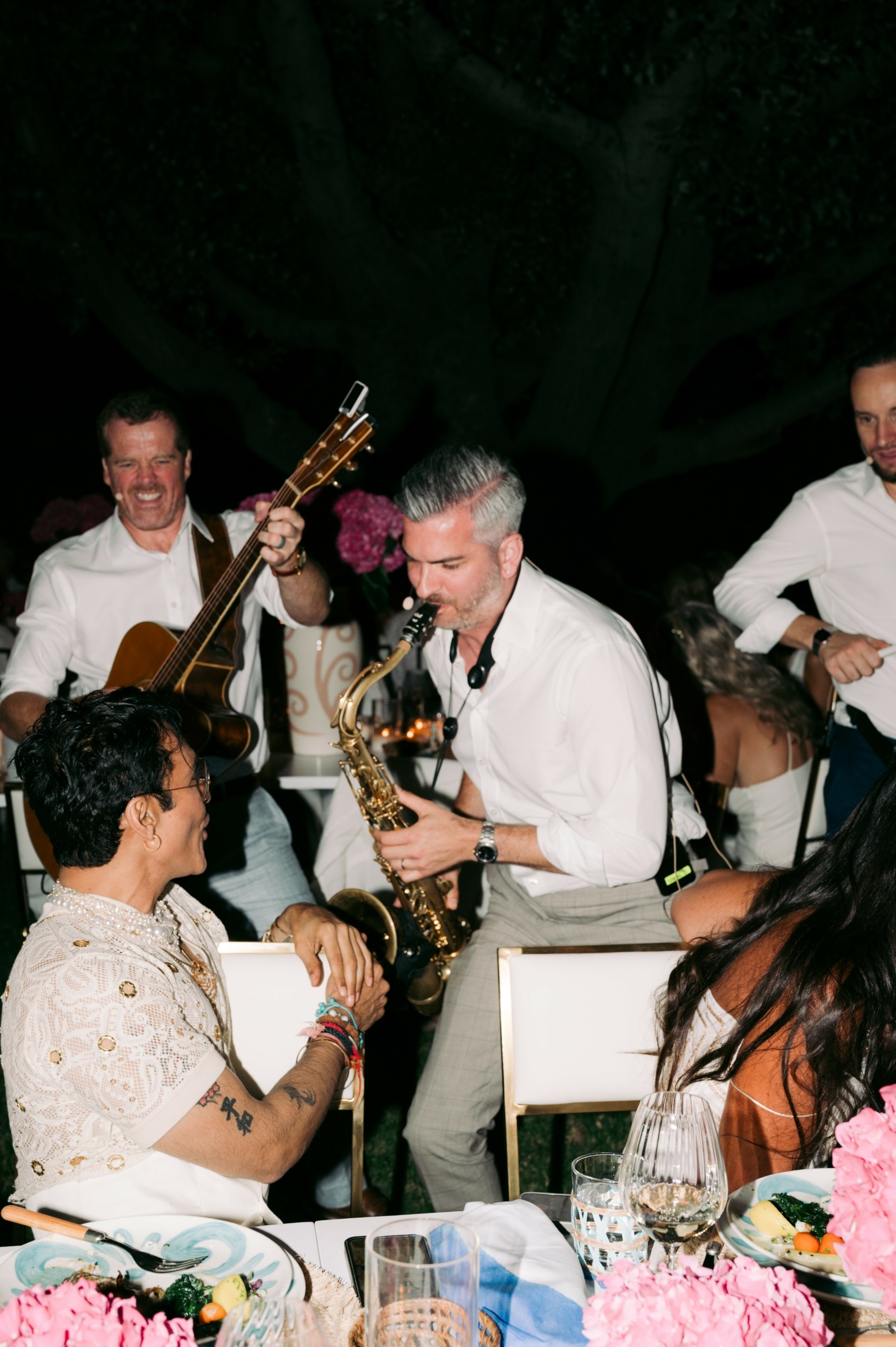 Ιδιαίτερη στιγμή της βραδιάς ήταν όταν ο επιχειρηματίας Τάκης Κανελλόπουλος τραγούδησε δημοφιλή ξένα τραγούδια εν μέσω επιφωνημάτων ενθουσιασμού, αφιερώνοντάς τα στην εορτάζουσα σύζυγό του Θέμις
