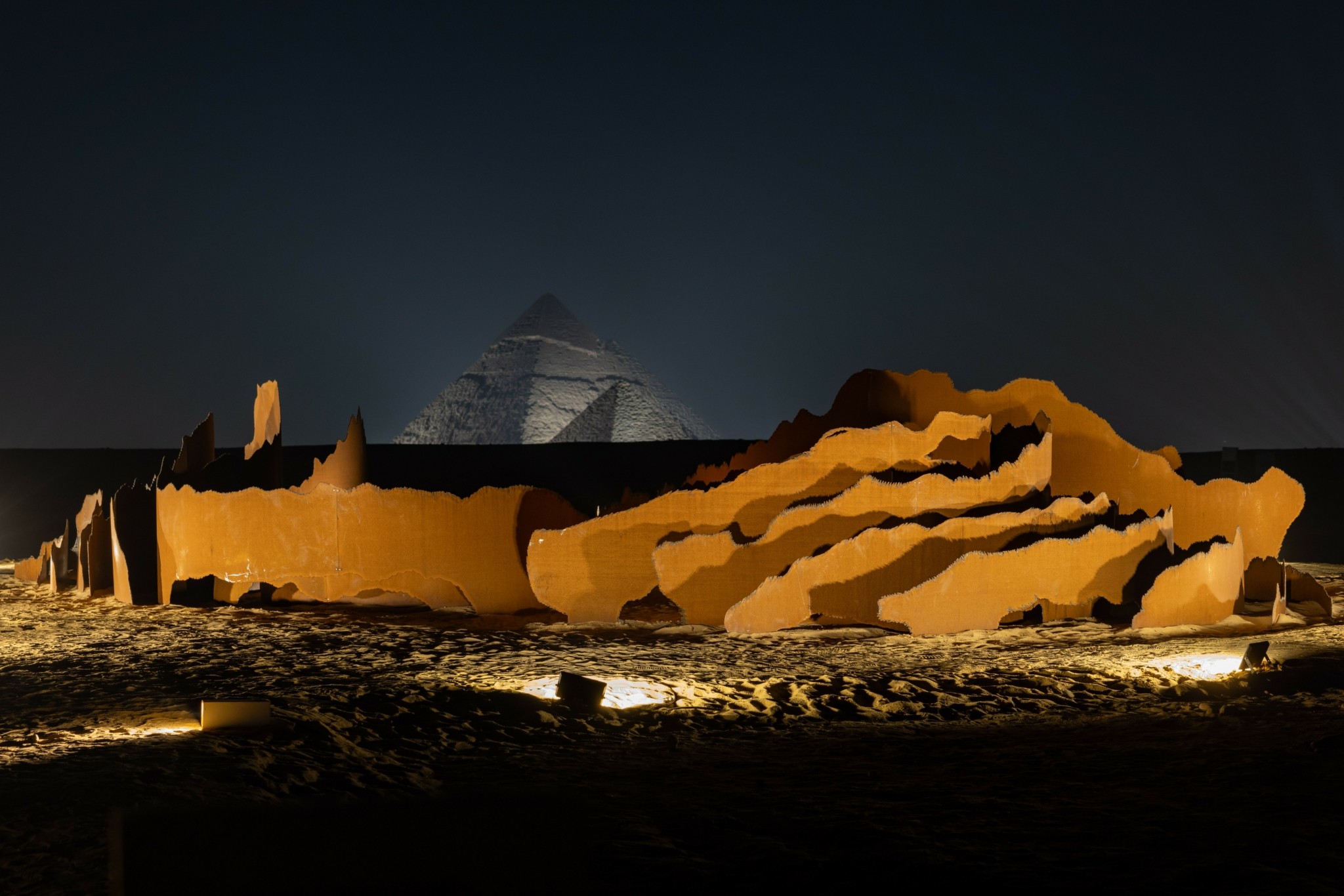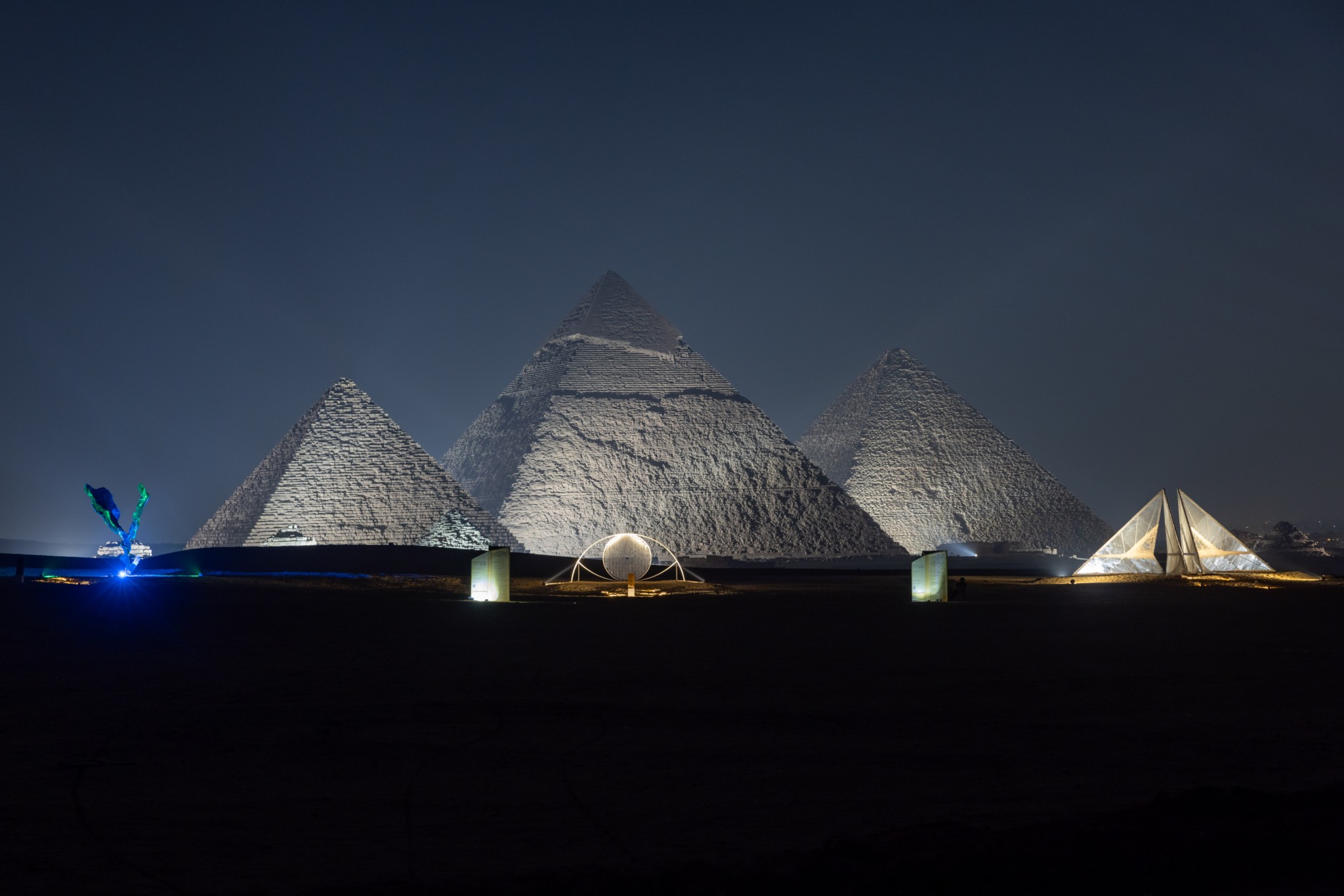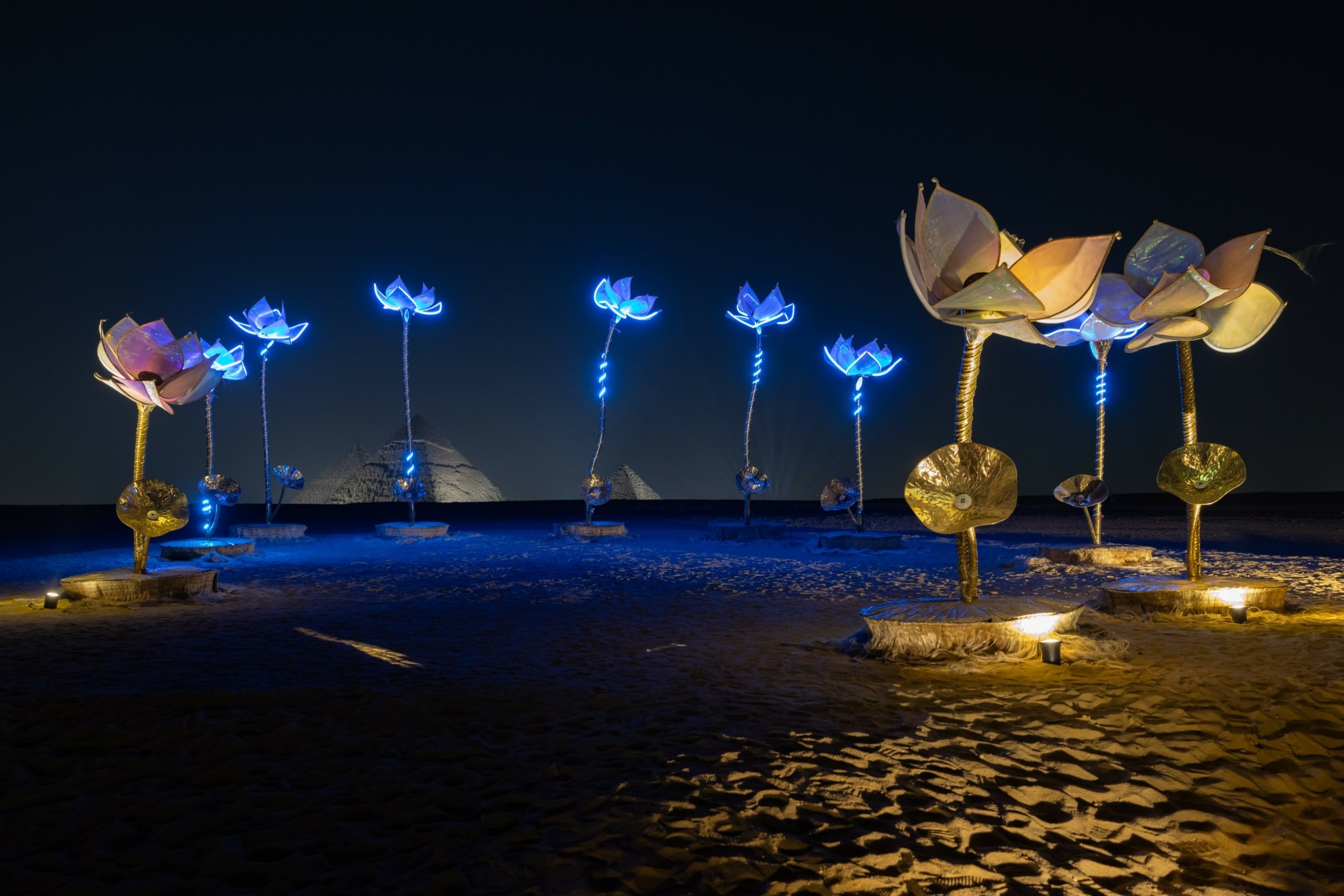 Ανάμεσα στους αμμόλοφους, με θέα τις αρχαίες Πυραμίδες της Γκίζας, μια μεγάλη υπαίθρια έκθεση τέχνης συγκέντρωσε 10 έργα διεθνών σύγχρονων καλλιτεχνών, δηλαδή installations που ανταποκρίνονται στα εμβληματικά μνημεία. Όπως άλλου τύπου πυραμίδες, σκηνές ακόμη και λουλούδια. Τα πολύχρωμα λουλούδια της ερήμου.
