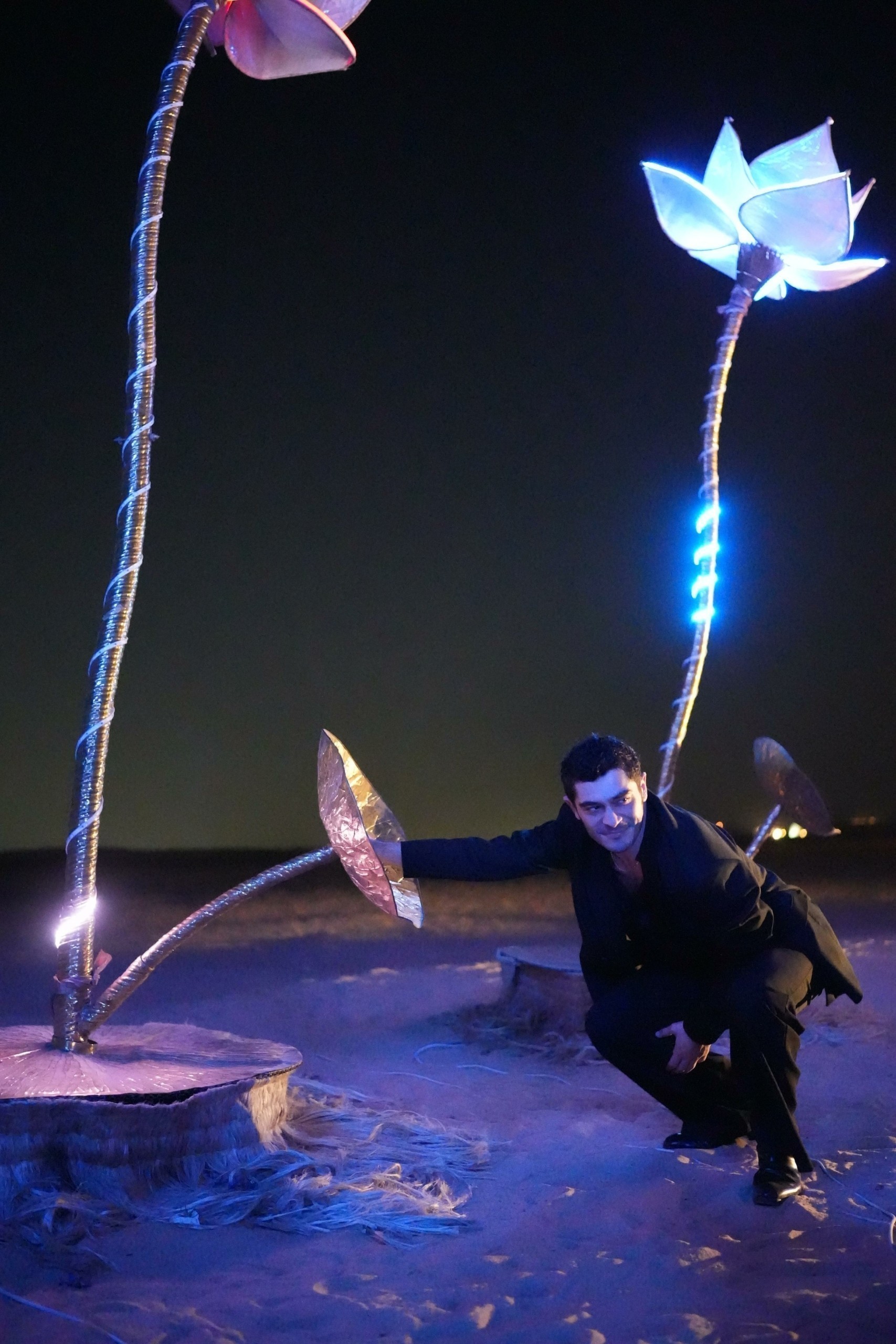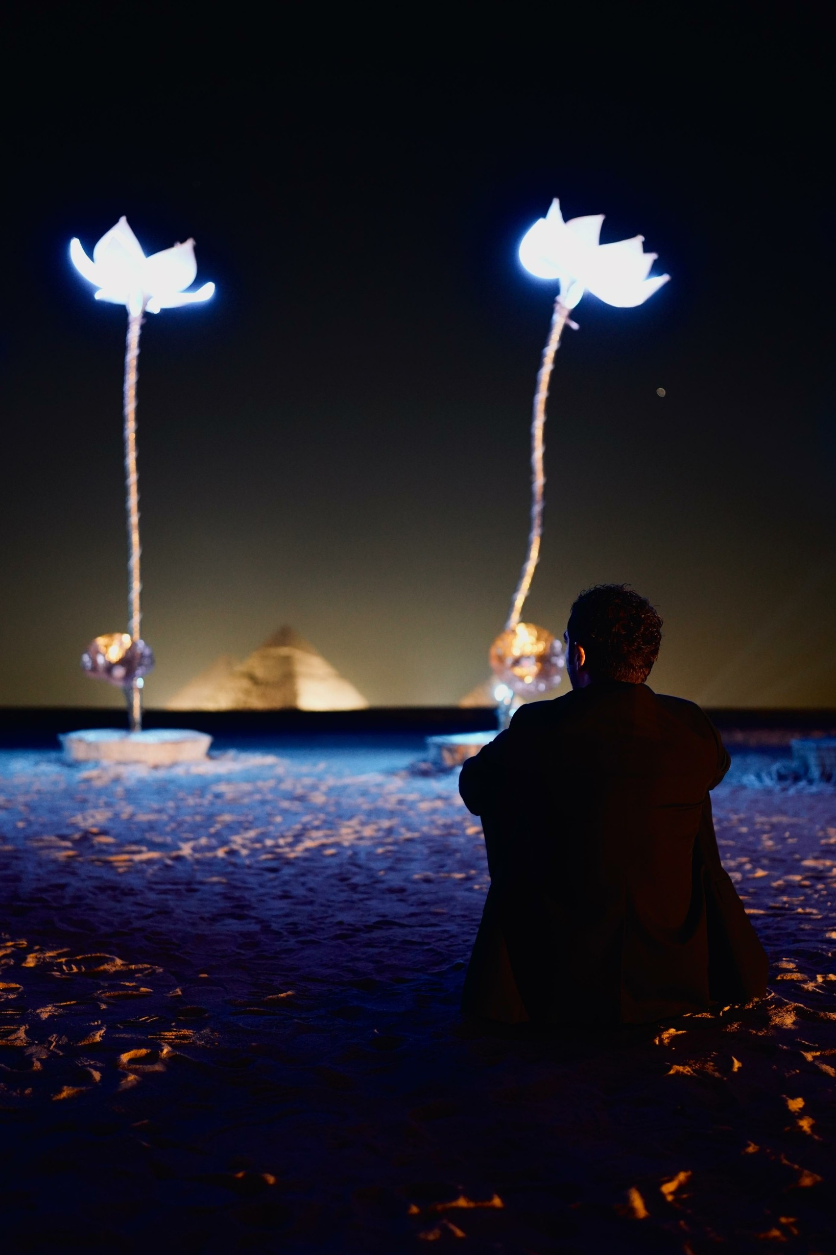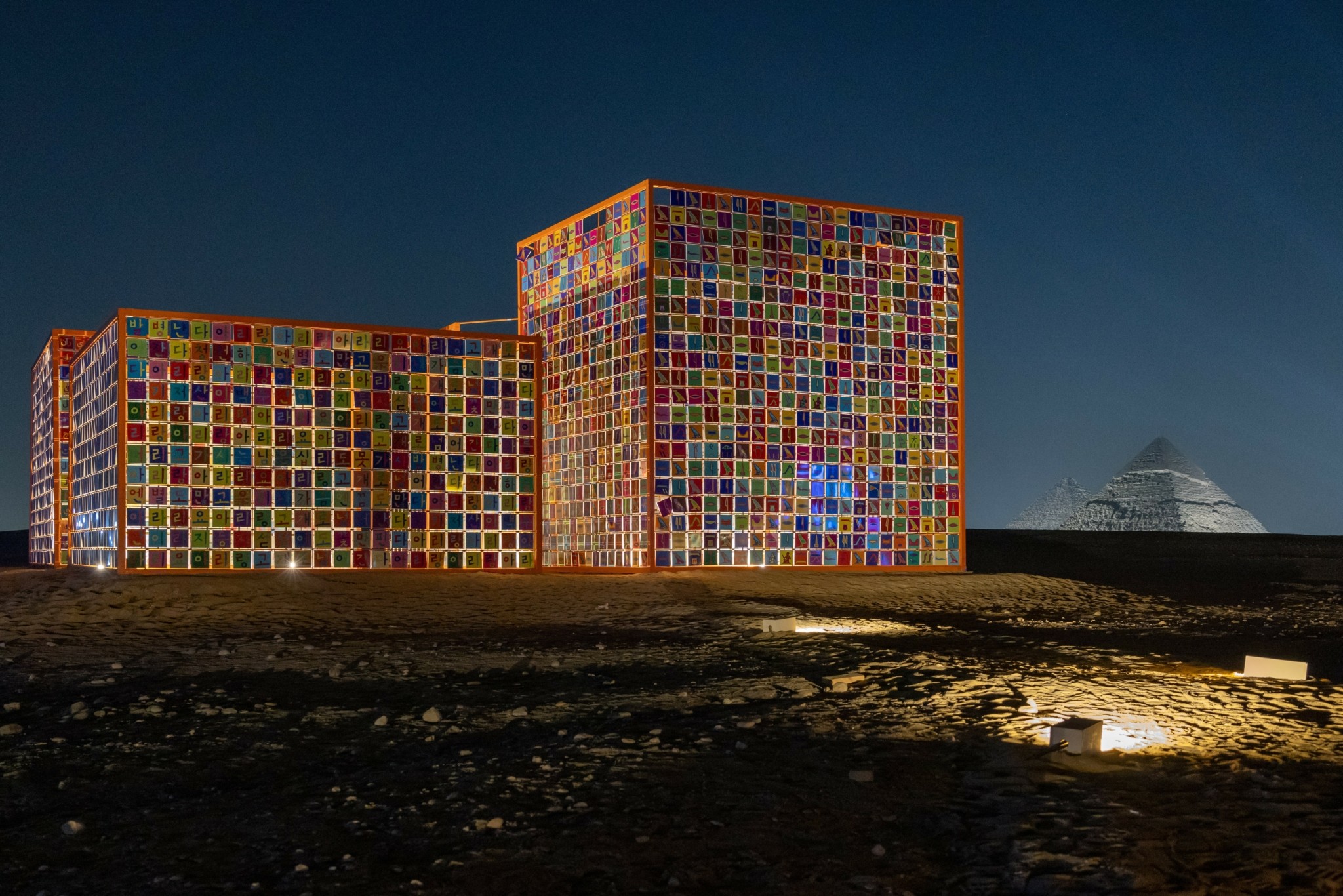 Ανάμεσα στους αμμόλοφους, με θέα τις αρχαίες Πυραμίδες της Γκίζας, μια μεγάλη υπαίθρια έκθεση τέχνης συγκέντρωσε 10 έργα διεθνών σύγχρονων καλλιτεχνών, δηλαδή installations που ανταποκρίνονται στα εμβληματικά μνημεία. Όπως άλλου τύπου πυραμίδες, σκηνές ακόμη και λουλούδια. Τα πολύχρωμα λουλούδια της ερήμου.