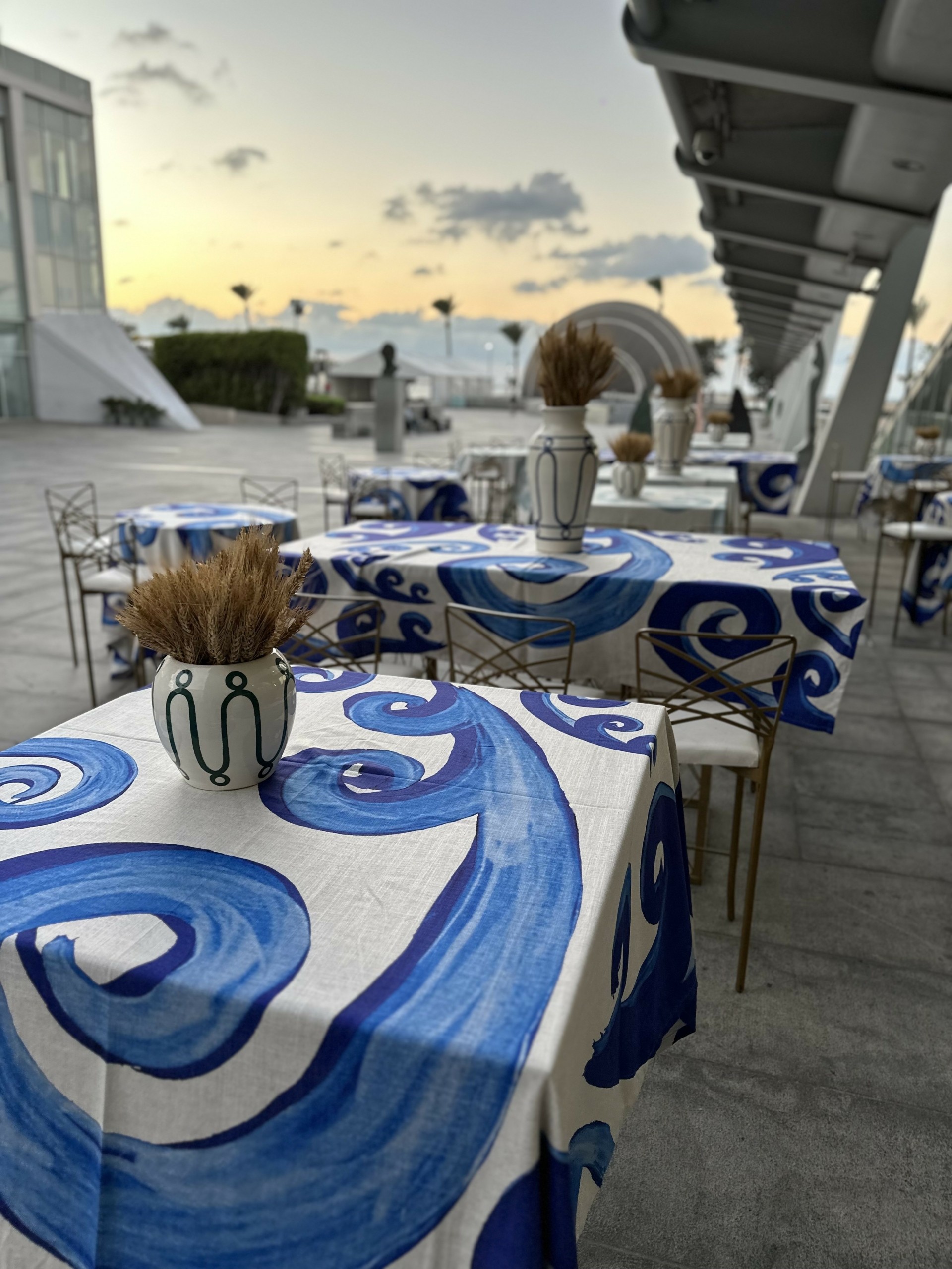 Η Θέμις Ζουγανέλη ανέλαβε το στρώσιμο των τραπεζιών που μπορεί να είχαν ως γκουρμέ Αραβικές νοστιμιές απέπνεαν όμως την ελληνική αισθητική που διαθέτει τόσο η ίδια όσο και τα εξαιρετικά προϊόντα της.