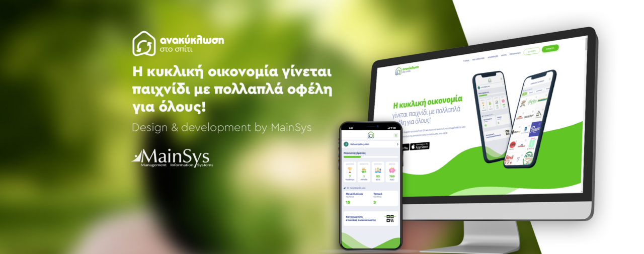 Η MainSys έχει επίσης συνδράμει στην μείωση του οικολογικού αποτυπώματος με το πρωτοποριακό ανταποδοτικό πρόγραμμα «Ανακύκλωση στο Σπίτι» σε συνεργασία με 10 Δήμους πανελλαδικά, το οποίο συμβάλλει στην αντιμετώπιση της κλιματικής αλλαγής με την μείωση της ρύπανσης του περιβάλλοντος. Πρόκειται για μια πλατφόρμα ανταποδοτικής ανακύκλωσης με διπλό όφελος – οι δημότες κερδίζουν εκπτώσεις και προνόμια και οι δήμοι έχουν όλα τα απορρίμματα ζυγισμένα και χωρισμένα σε κατηγορίες με αποτέλεσμα να είναι ευκολότερη η διαδικασία ανακύκλωσης.